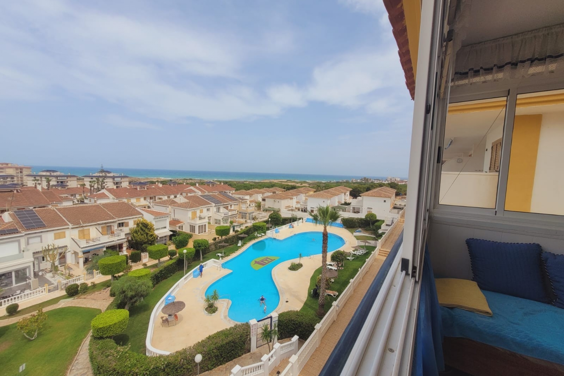 Apartment overlooking the beach in La Mata - Stunning views The apartment is located in a popular housing estate with spacious common areas, a shared pool and garden. The apartment has large windows, a glazed terrace and the views are simply spectacular. The living room is spacious and provides direct access to a large 7m2 terrace. The open kitchen is practical and functional and is integrated with the living room. Bedroom with fitted wardrobes and bathroom.