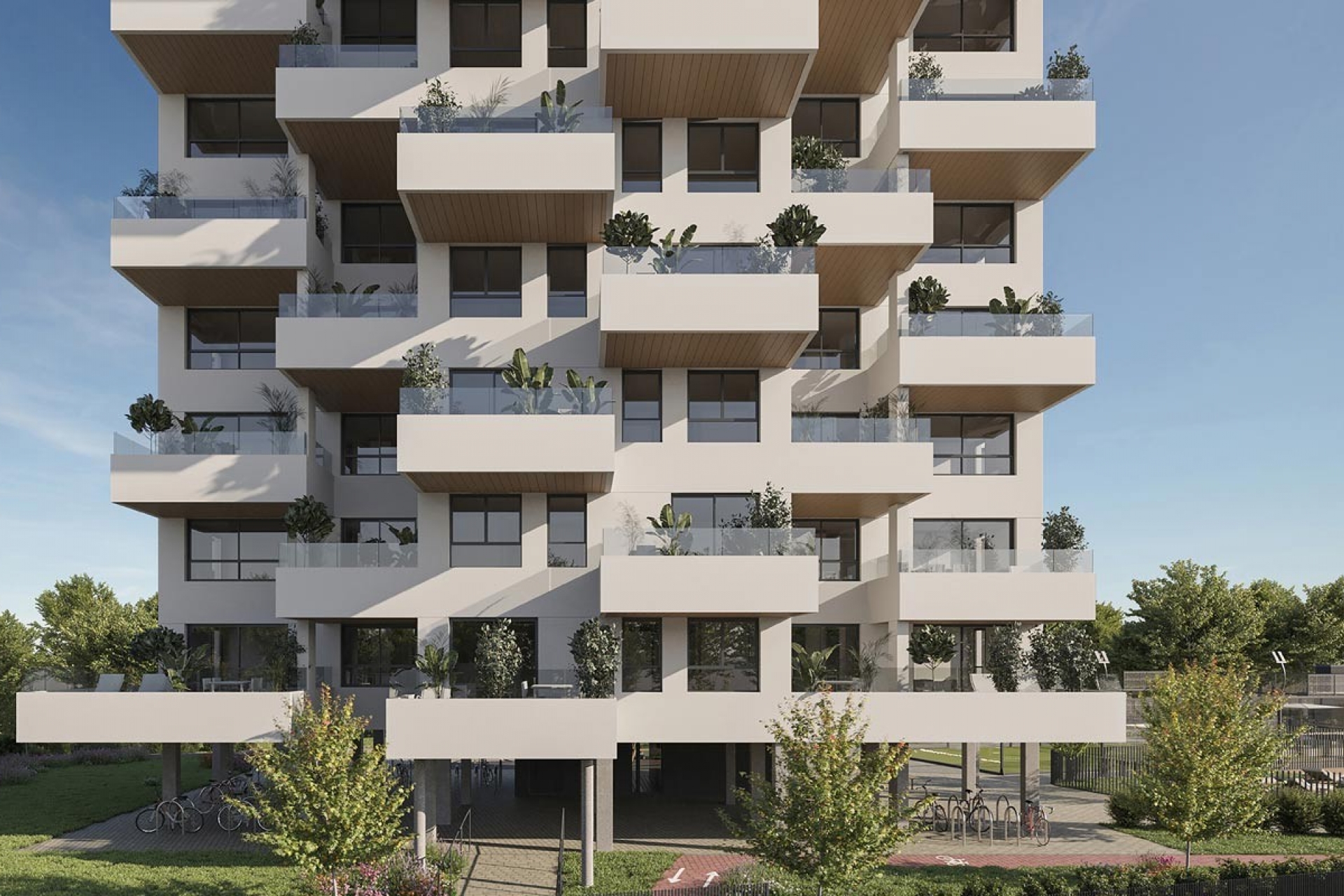 There are 2 and 3-bedroom apartments with terraces in various orientations and layouts, including penthouses with views of the surrounding area, perfect for enjoying summer sunsets.