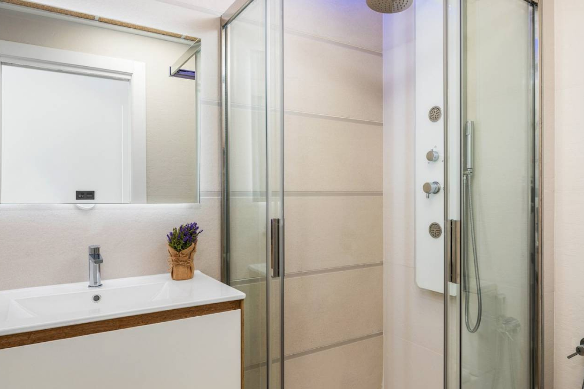 The home's interior blends seamlessly with its beautiful exterior thanks to glass doors and large windows. You will be amazed by the modern open-plan kitchen with a breakfast bar, a bright multi-functional living and dining area, 2 comfortable bedrooms, and 2 high-standard bathrooms with showers.