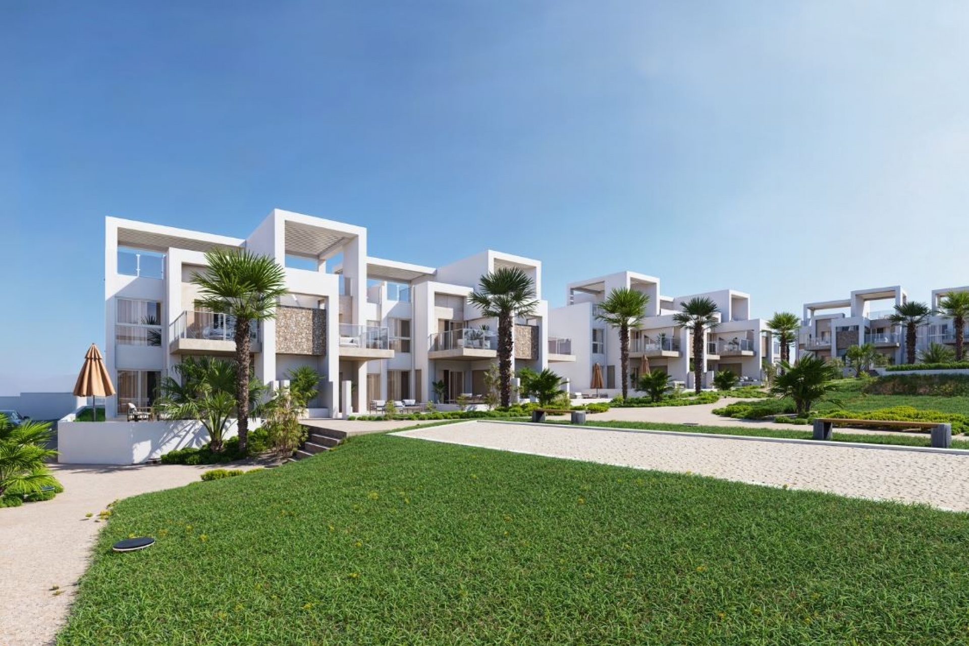Each property comes with a fully equipped kitchen with modern appliances and air conditioning for year-round comfort. Residents can enjoy beautifully landscaped communal gardens and a large swimming pool, creating a peaceful and relaxing environment. The location offers tranquility while remaining close to all...