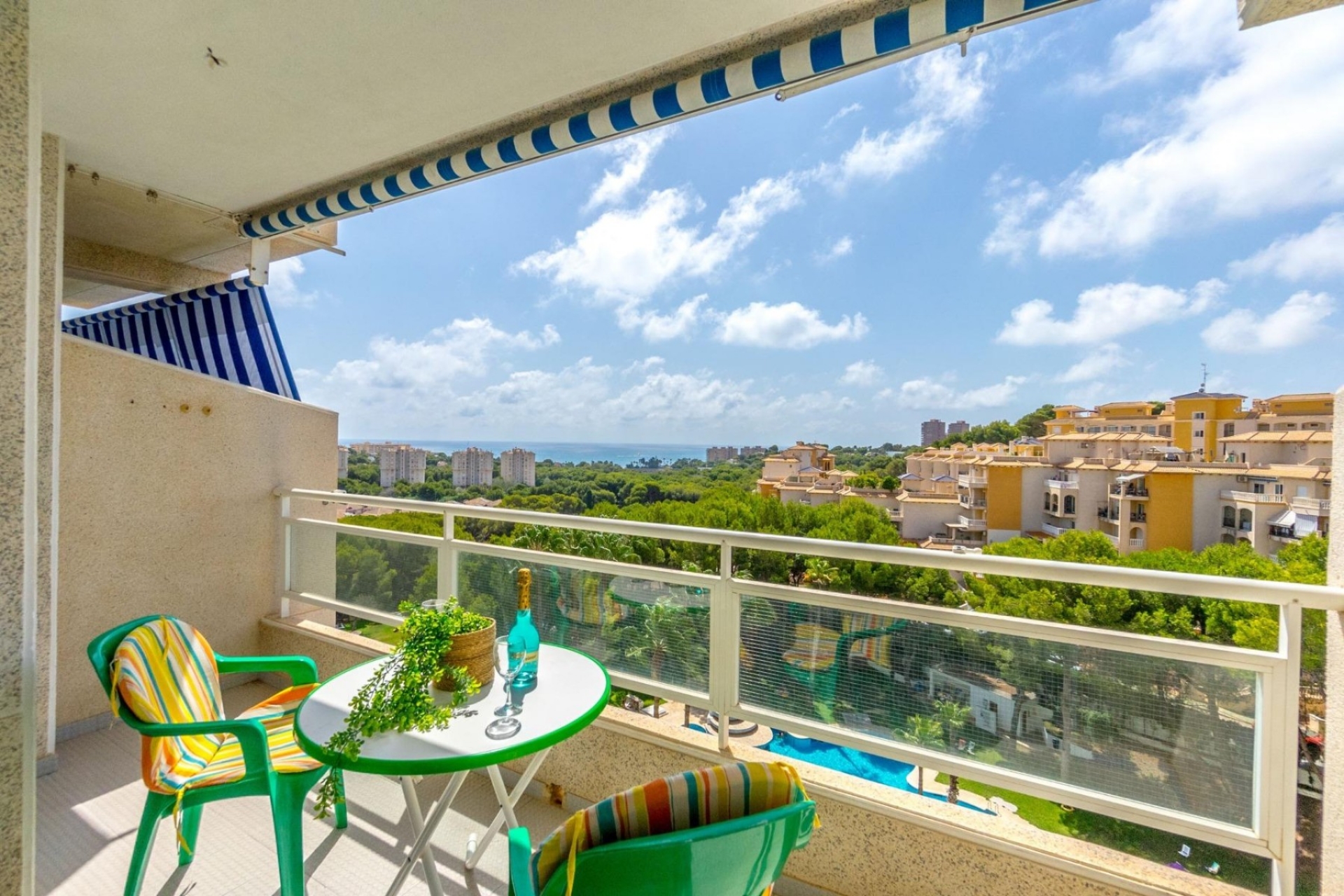 Precioso apartamento de tres dormitorios en quinta planta con orientación este y magnificas vistas al mar, situado en la Dehesa de Campoamor. La vivienda cuenta con 76m2 y consta de 3 dormitorios, 2 baños, salón-comedor, cocina americana totalmente equipada y terraza de unos 6m desde la que se disfruta de unas maravillosas vistas panorámicas abiertas al mar y las zonas comunes del Residencial. La vivienda esta en muy buen estado y se vende totalmente amueblada. En el precio se incluye el trastero ubicado en el parking subterráneo. La Urbanización cuenta con zonas verdes de descanso, piscina comunitaria y pista de tenis. A 800m de la playa de Campoamor. Perfecto para vivir todo el año o pasar unas magníficas vacaciones.~