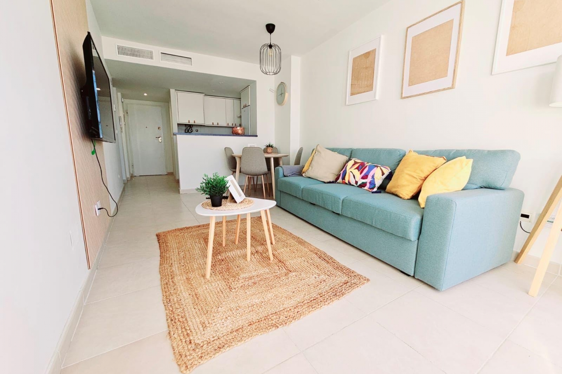 La vivienda cuenta con 2 amplios dormitorios, 2 baños completos, un salón-comedor luminoso y espacioso, y una elegante cocina americana totalmente equipada. Todo diseñado con un estilo contemporáneo y funcional. Además, incluye plaza de garaje y acceso a una piscina comunitaria perfecta para disfrutar del clima mediterráneo.