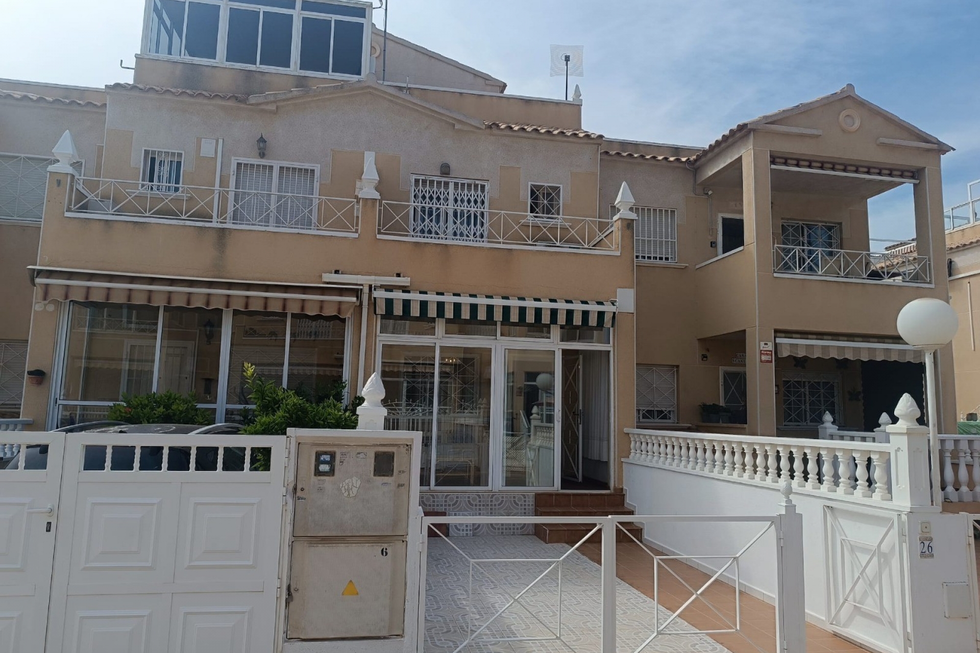 Dentro de una zona residencial a escasos 10 minutos del centro de Torrevieja, y junto a centros comerciales, se encuentra este chalet adosado, dentro de una urbanización con piscina comunitaria.