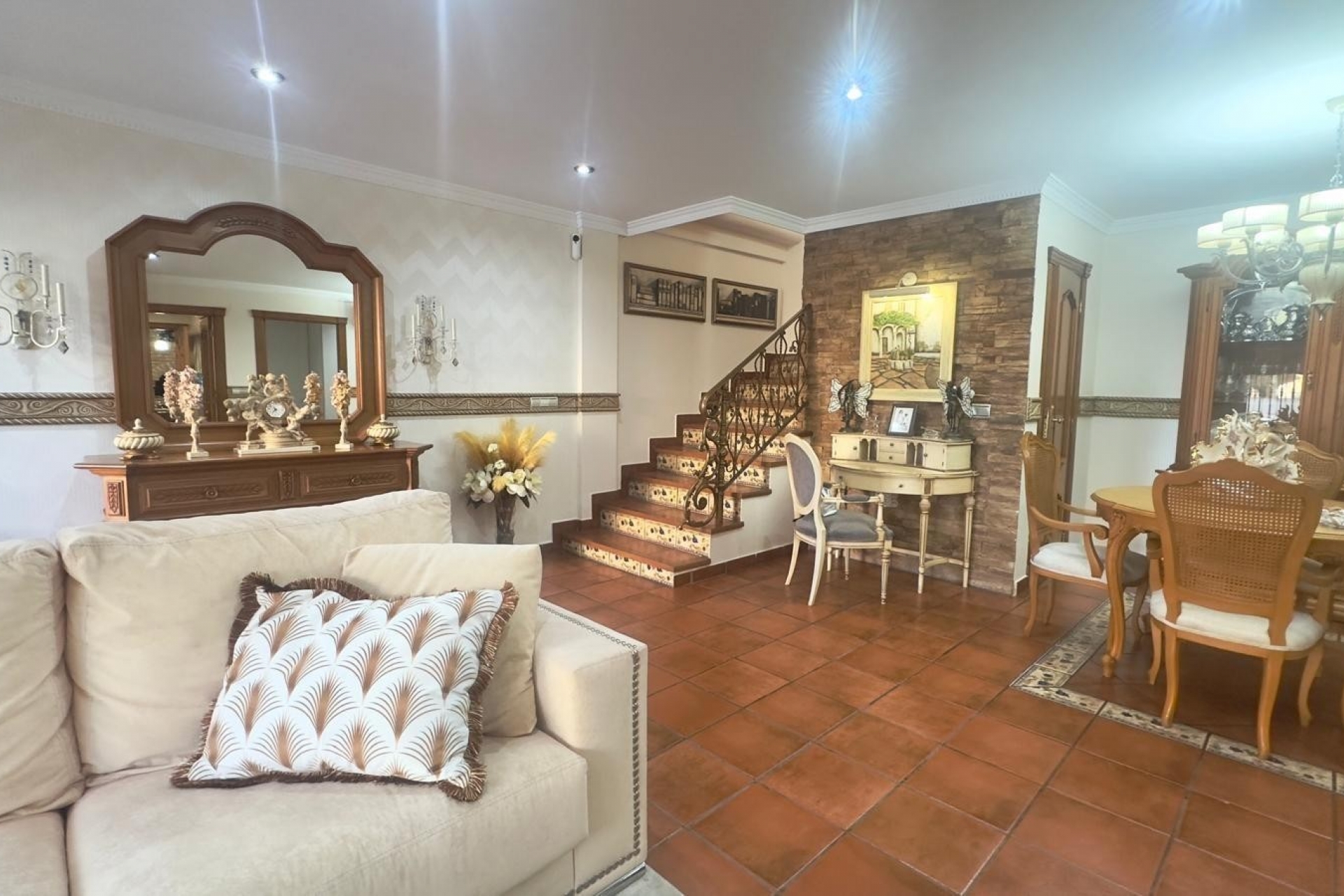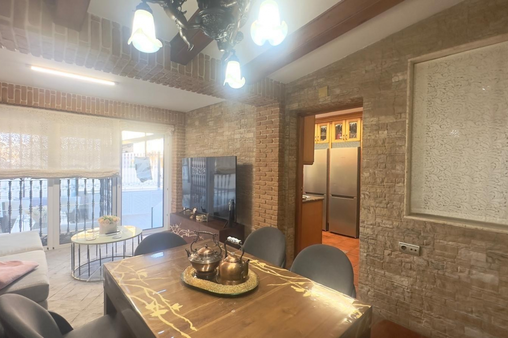 El interior ofrece un salón amplio y luminoso, presidido por una chimenea funcional que proporciona calidez en los meses de invierno y realza el ambiente acogedor de la casa. En la misma planta, encontrará un aseo de invitados, un dormitorio de invitados, ideal para familiares o visitas, y una cocina independiente totalmente equipada con zona de comedor y un baño con ducha.