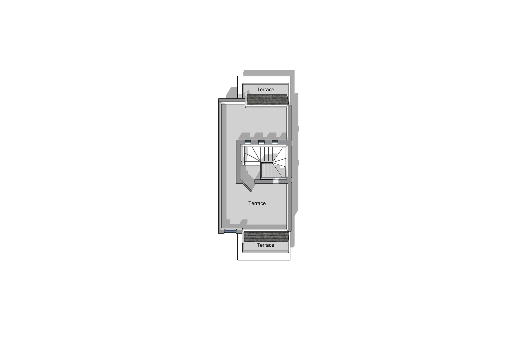 Na pierwszym piętrze znajdują się dwie sypialnie z wyjściem na taras i łazienka. Na dachu znajduje się taras słoneczny.