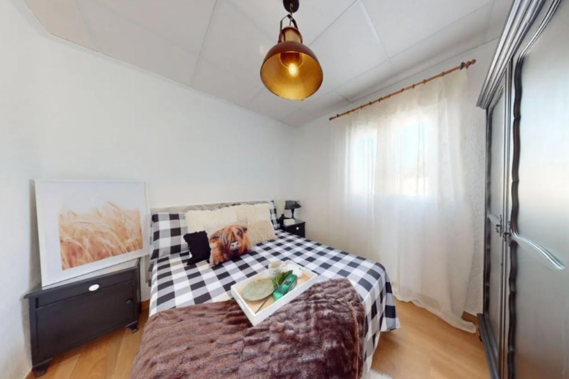Składa się z pokoju dziennego, otwartej kuchni dwóch sypialni i łązienki.