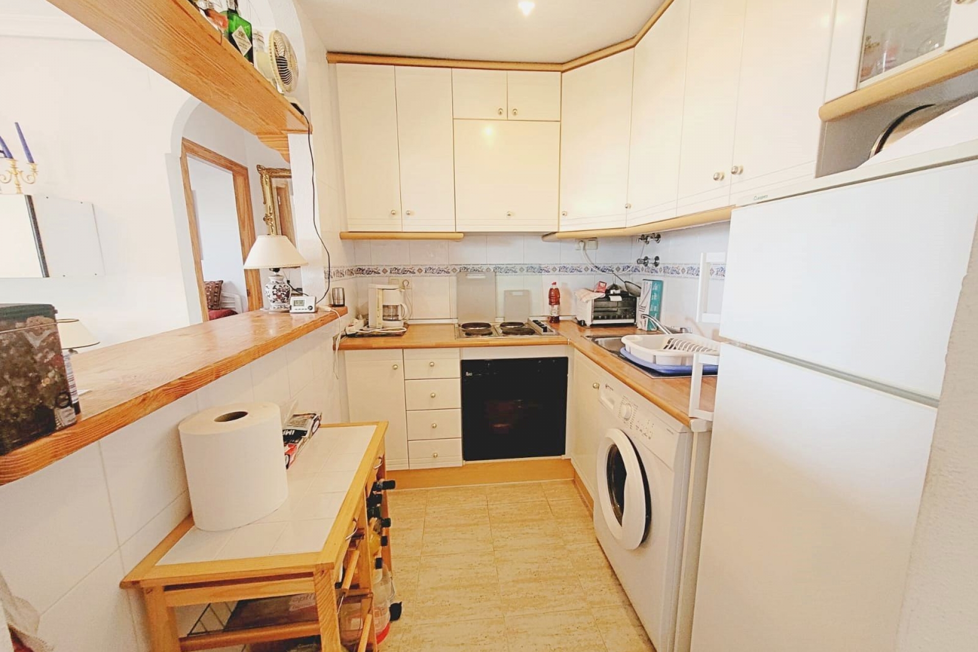Duży taras do relaksu, a także dość przestronny salon połączony z kuchnią w stylu hiszpańskim