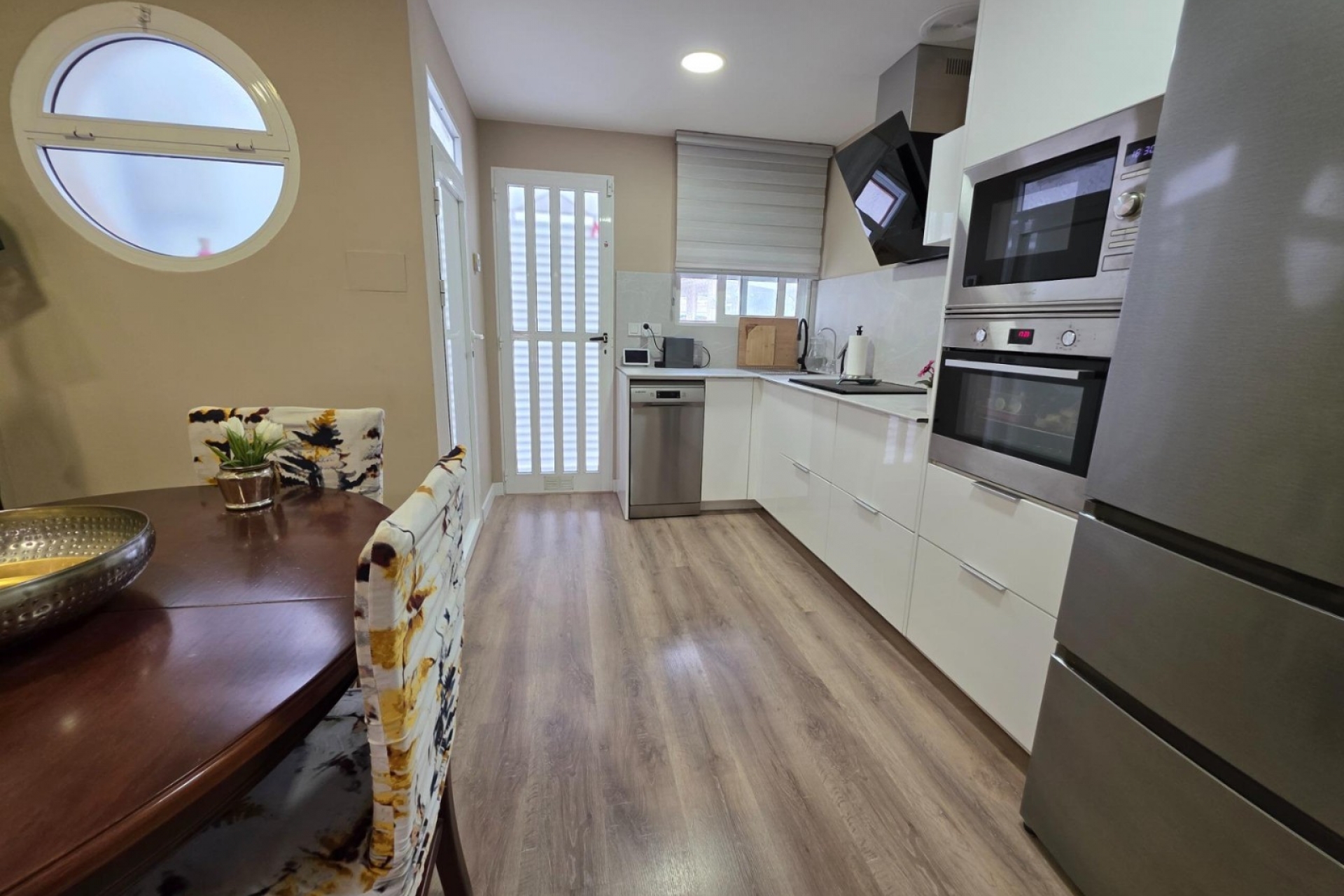 Przedstawiamy Państwu ten gustownie odnowiony bungalow, położony w spokojnej okolicy Santa Pola, zaledwie 300 metrów od morza. Jego lokalizacja łączy w sobie spokój dzielnicy mieszkalnej z bliskością centrum i wszelkiego rodzaju usług: supermarketów, placówek edukacyjnych, sklepów i miejsc spacerowych. Dom składa się z 3 kondygnacji. Na parterze znajduje się przestronny salon z otwartą kuchnią ,jadalnia i toaleta, które zapewniają wygodę i funkcjonalność. Na pierwszym piętrze znajdują się dwie sypialnie i łazienka, a na poddaszu główna sypialnia z łazienką i przestronnym balkonem, z którego roztacza się widok na morze.
