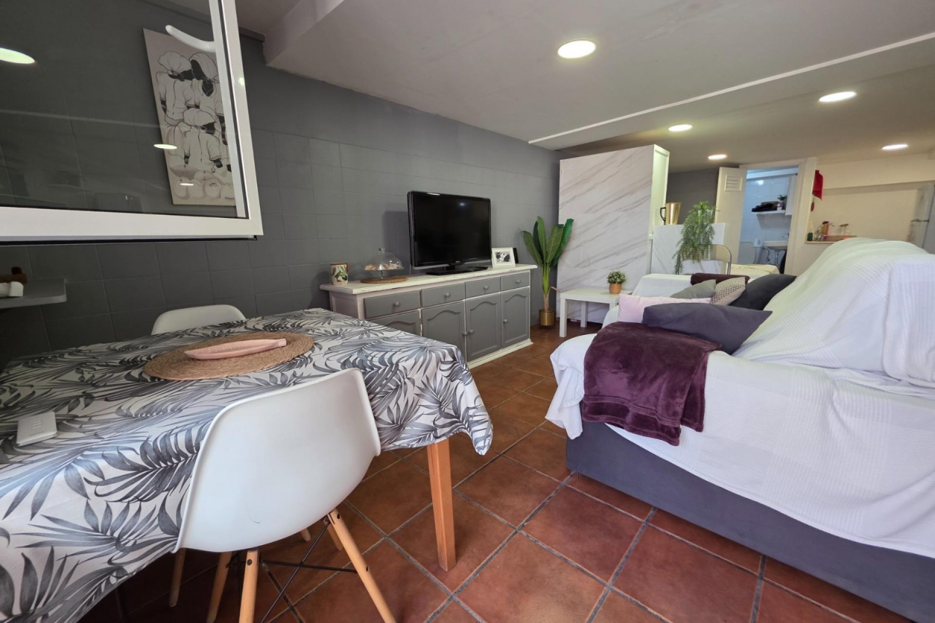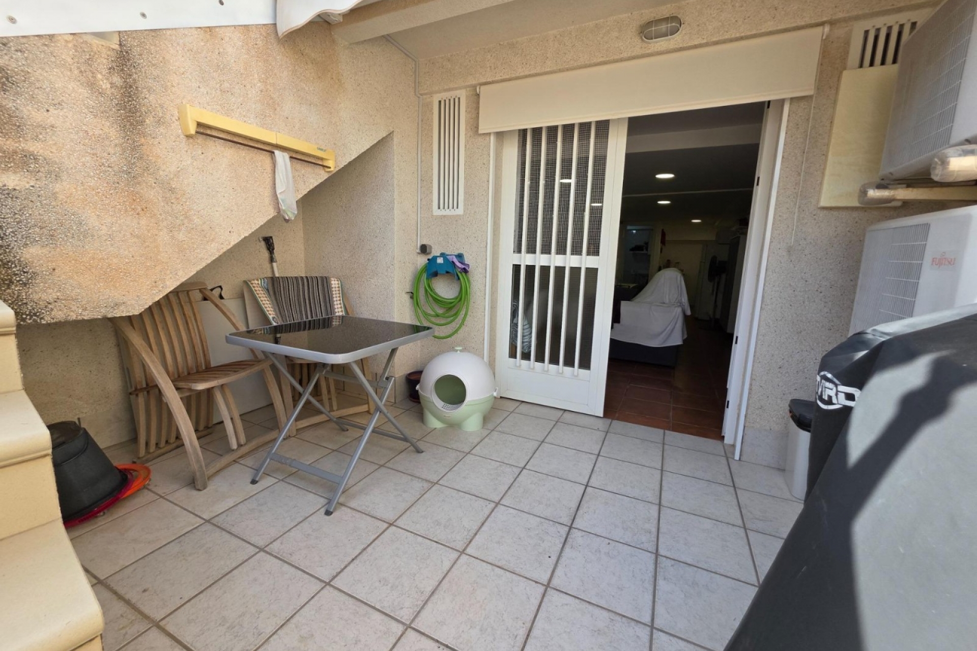W półpiwnicy mieszkanie oferuje niezależną przestrzeń, która daje jeszcze więcej możliwości: taras zewnętrzny, a wewnątrz otwartą przestrzeń z salonem, łóżkiem, małą kuchnią i łazienką, idealną dla gości lub jako dodatkowa przestrzeń. Mieszkanie jest umeblowane i wyposażone w sprzęty elektryczne i klimatyzację.