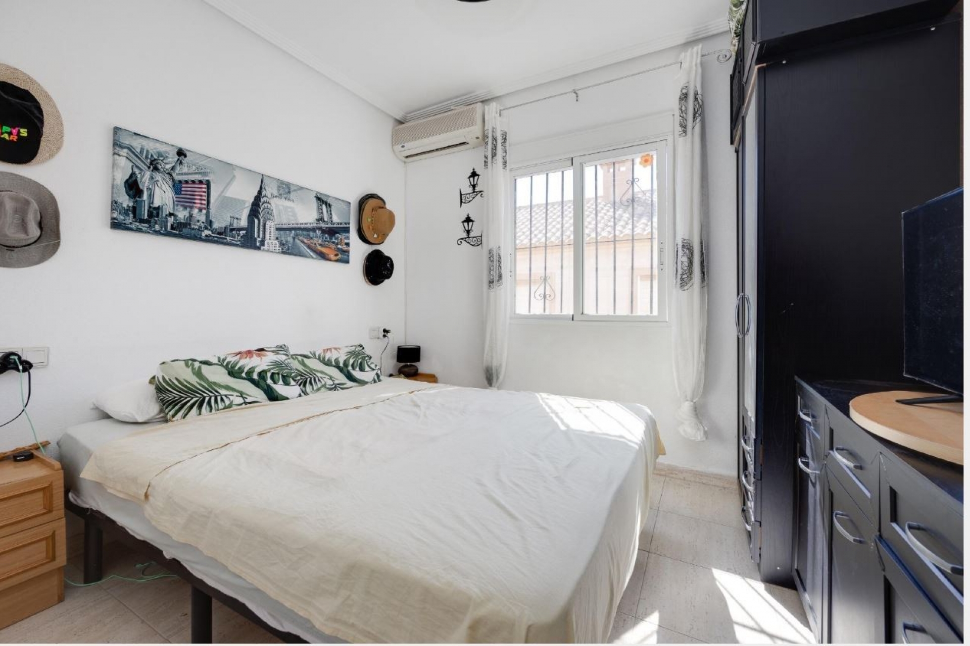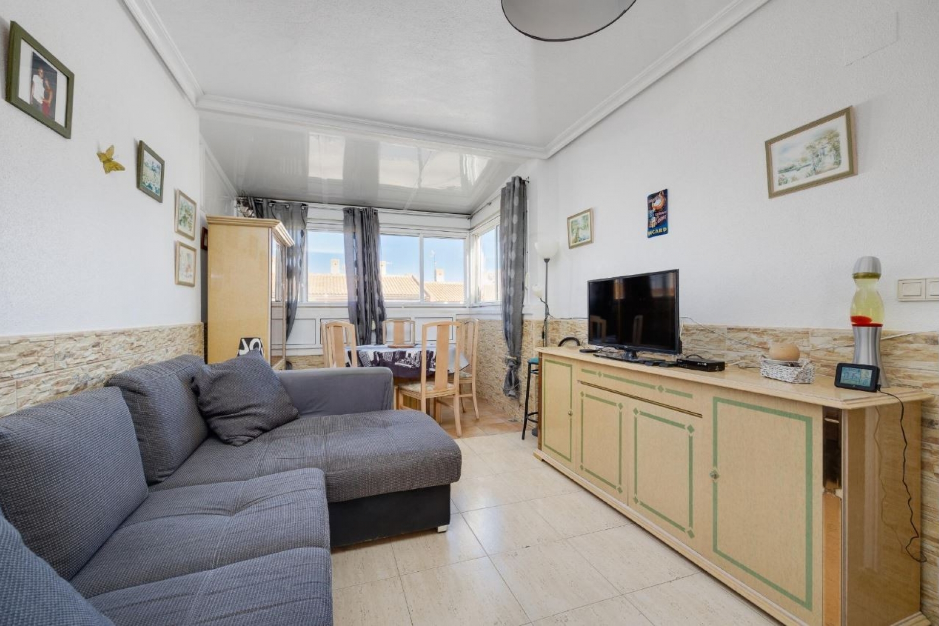 Przytulny bungalow na najwyższym piętrze położony w popularnej dzielnicy Aguas Nuevas w Torrevieja, zaledwie 1,7 km od morza.