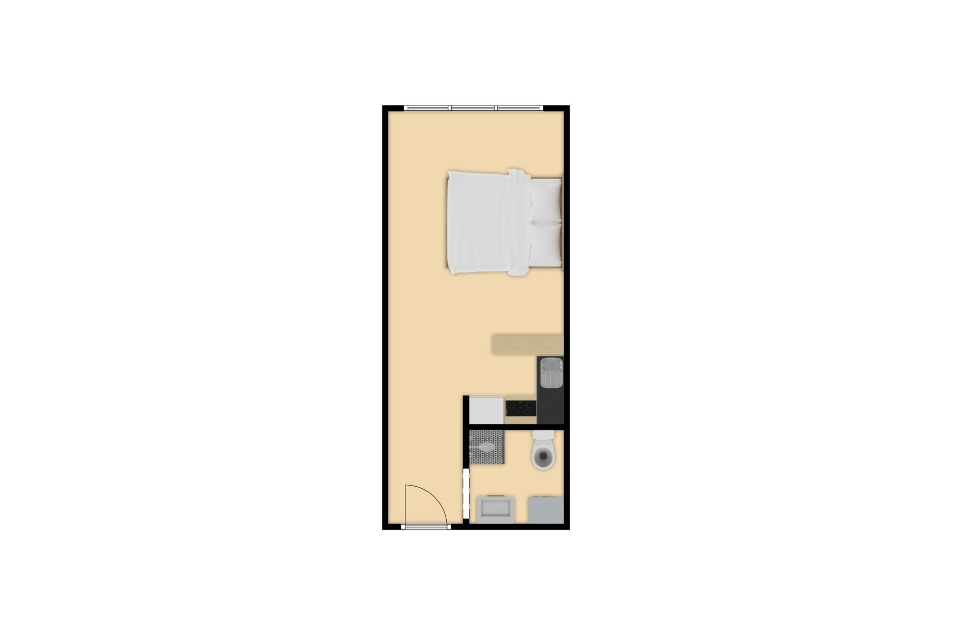 - 🏠 Układ: Funkcjonalny salon z aneksem kuchennym i łazienką.