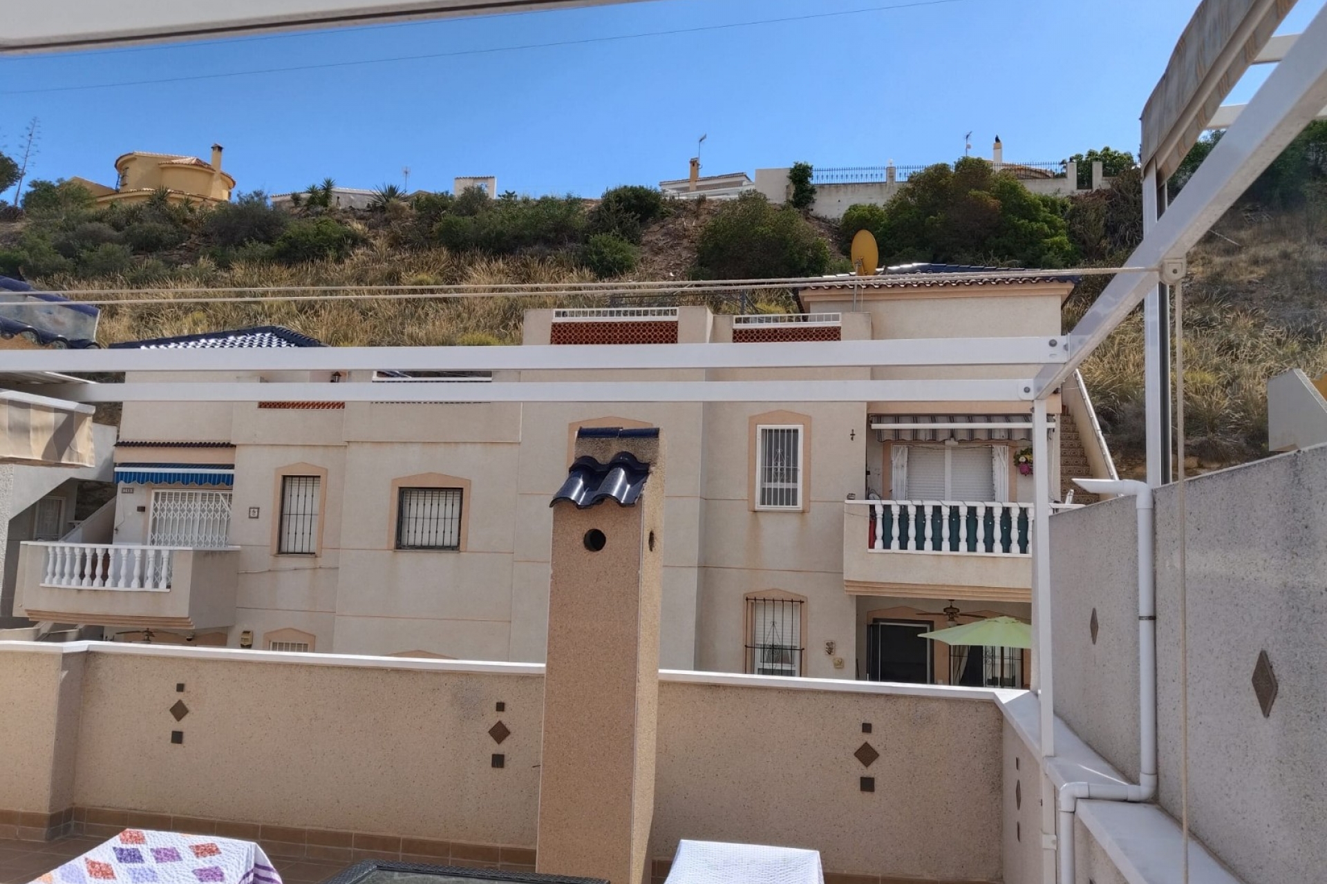 Bungalow w Ciudad Quesada  w badzo dobrej kondycji wraz z  solarium obejmujacym powierzchnie całego bungalowu z panoramicznym widokiem na  otaczająca okolice i wspólnotowym basenem wraz z  zielonym  ogrodem.