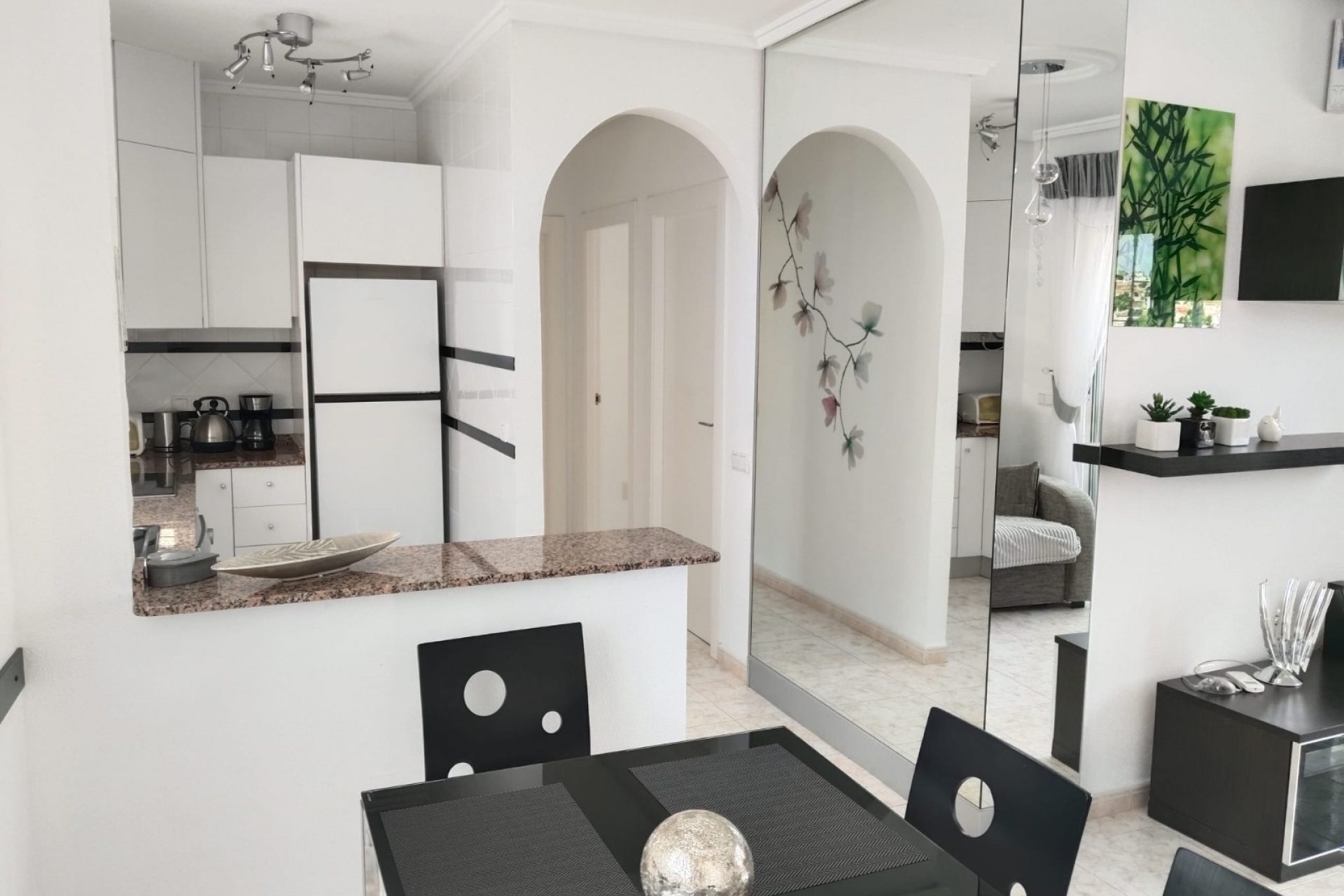 Bungalow jest w doskonałej kondycji, umeblowany i wyposażony, gotowy do zamieszkania. Otwarta kuchnia łączy się z salonem, tworząc wygodną i funkcjonalną przestrzeń do spędzania czasu. Widok na okolice dodaje uroku, który przekształca codzienne życie w autentyczne śródziemnomorskie...
