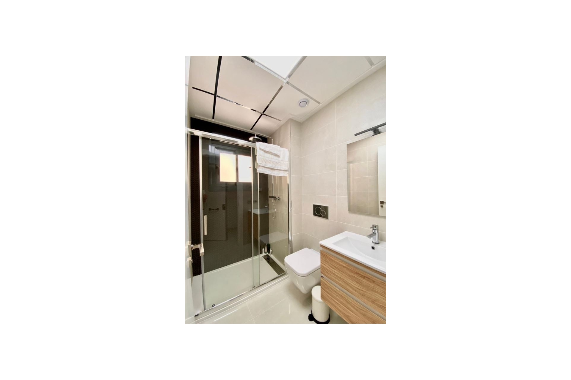 Nieruchomość oferuje dwie komfortowe sypialnie z zabudowanymi szafami, zapewniające wygodę i funkcjonalność. Wnętrze utrzymane jest w nowoczesnym stylu inspirowanym estetyką skandynawską – jasne kolory, proste formy i spójny design.