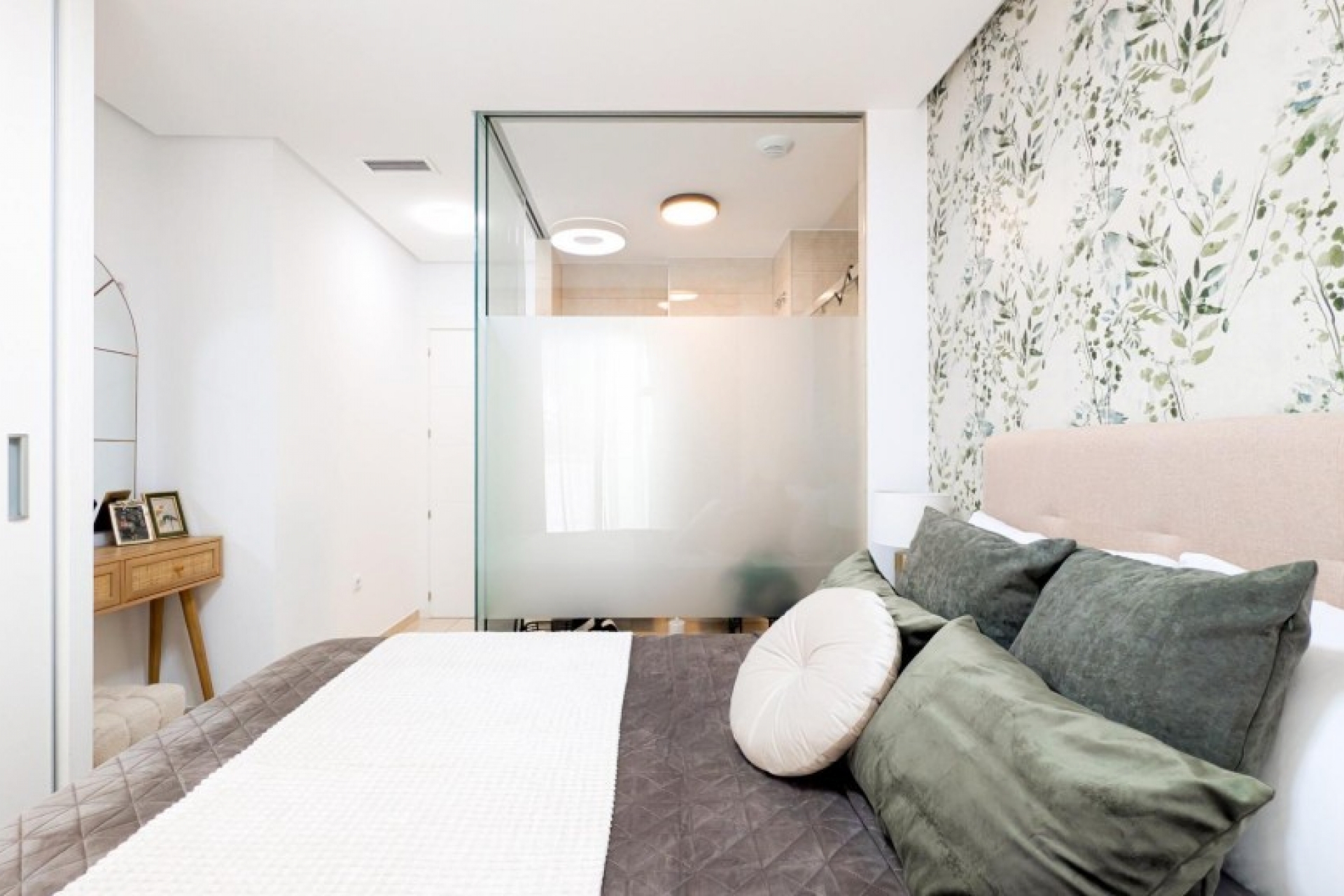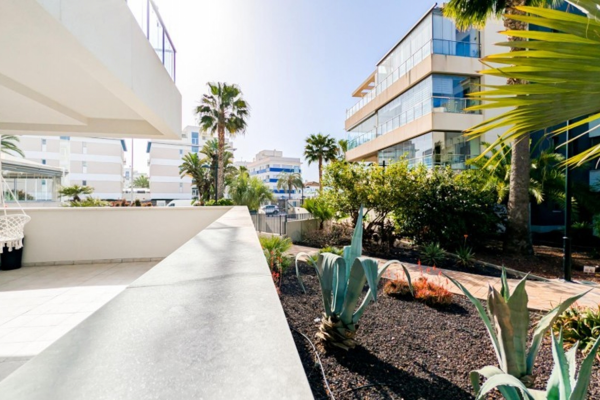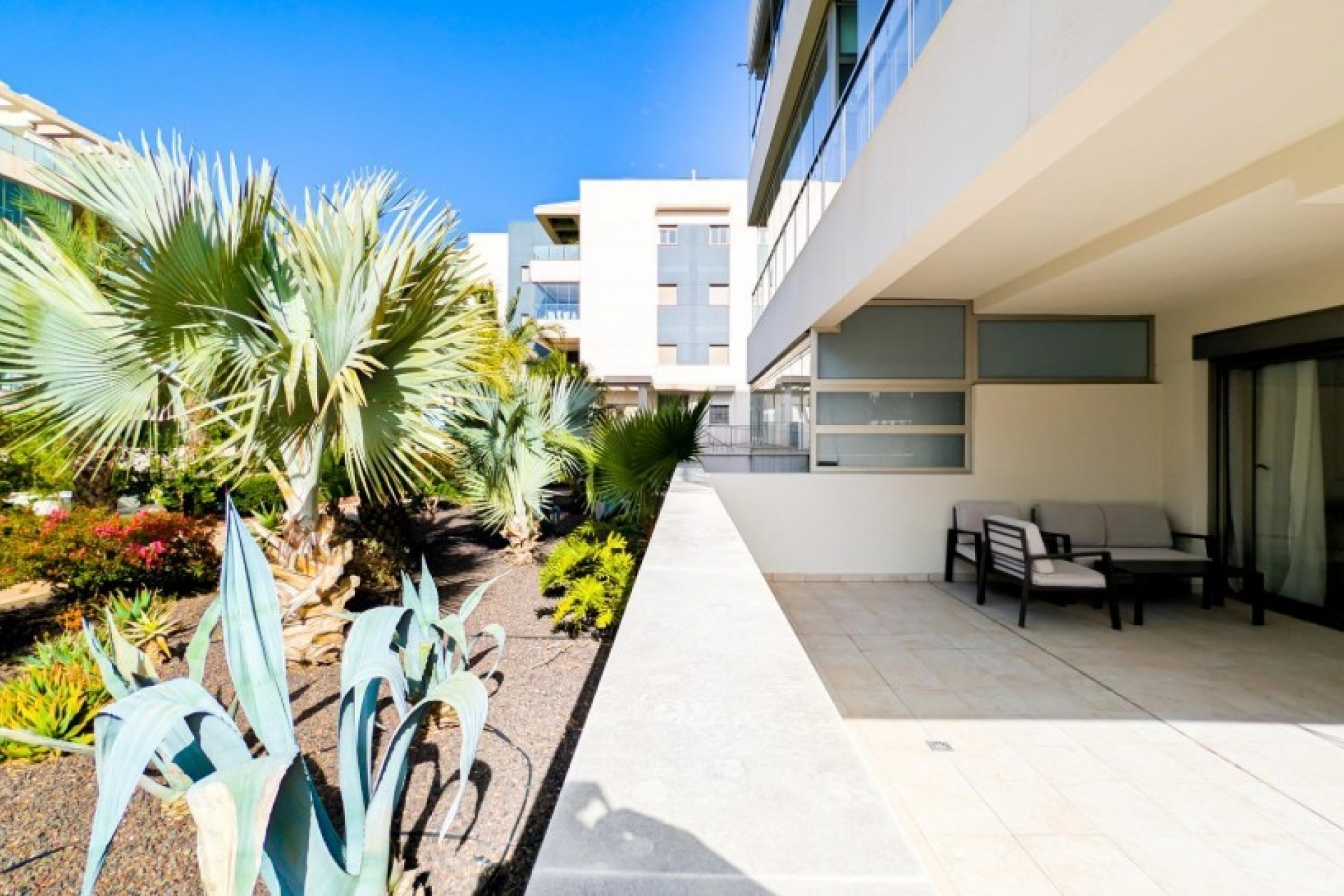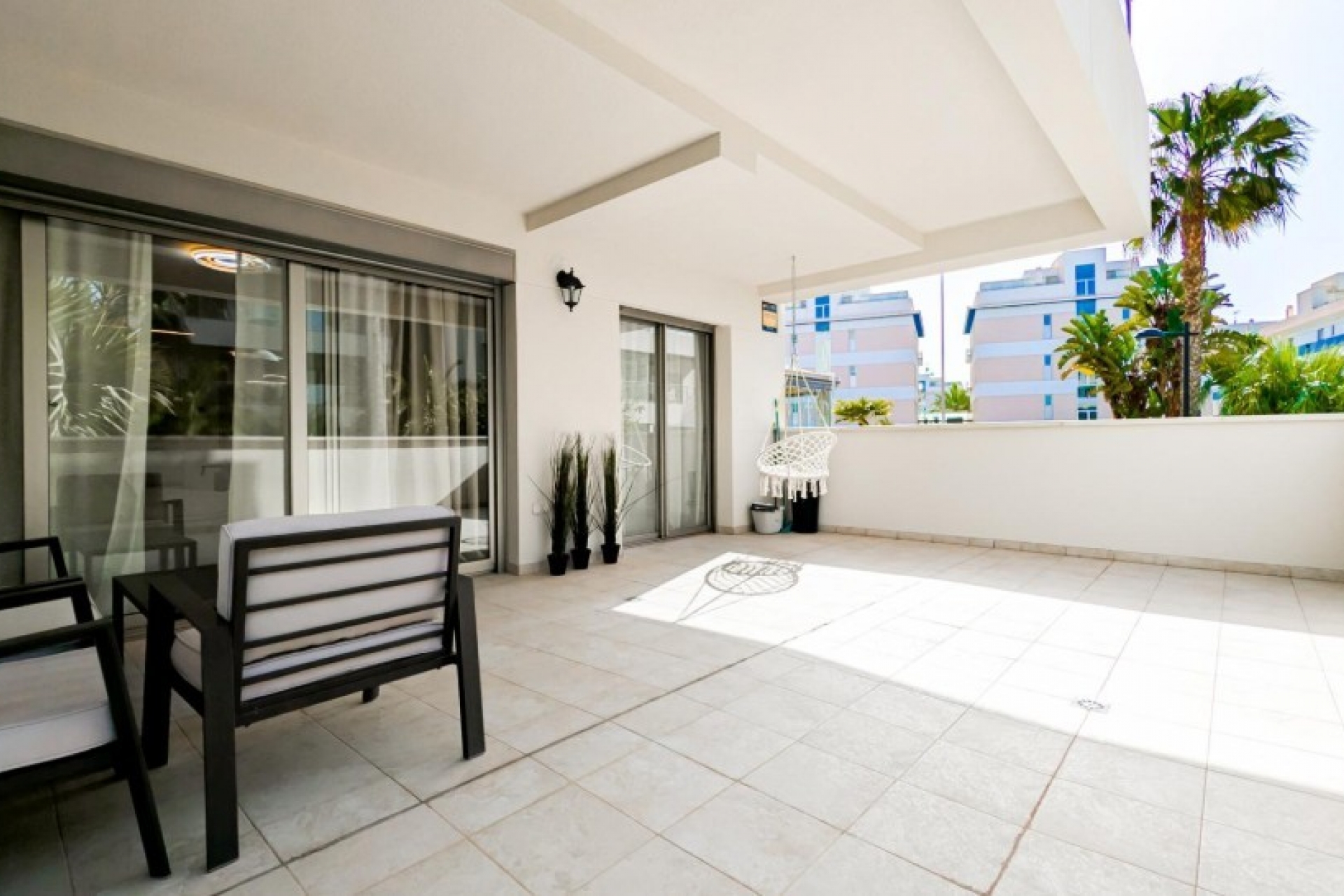Posiada trzy sypialnie, dwie łazienki oraz kuchnię połączoną z salonem, z którego można wyjść na prywatny taras.