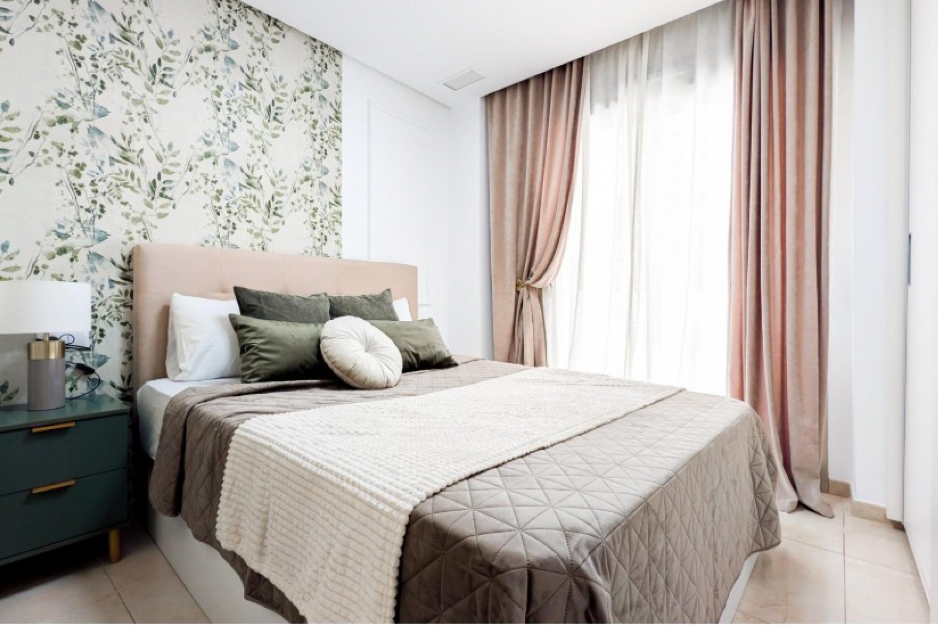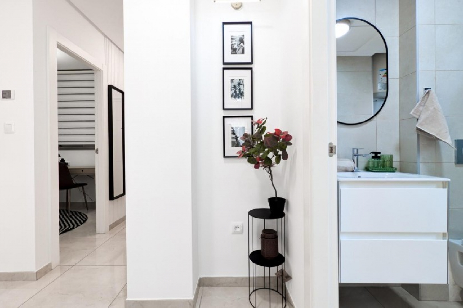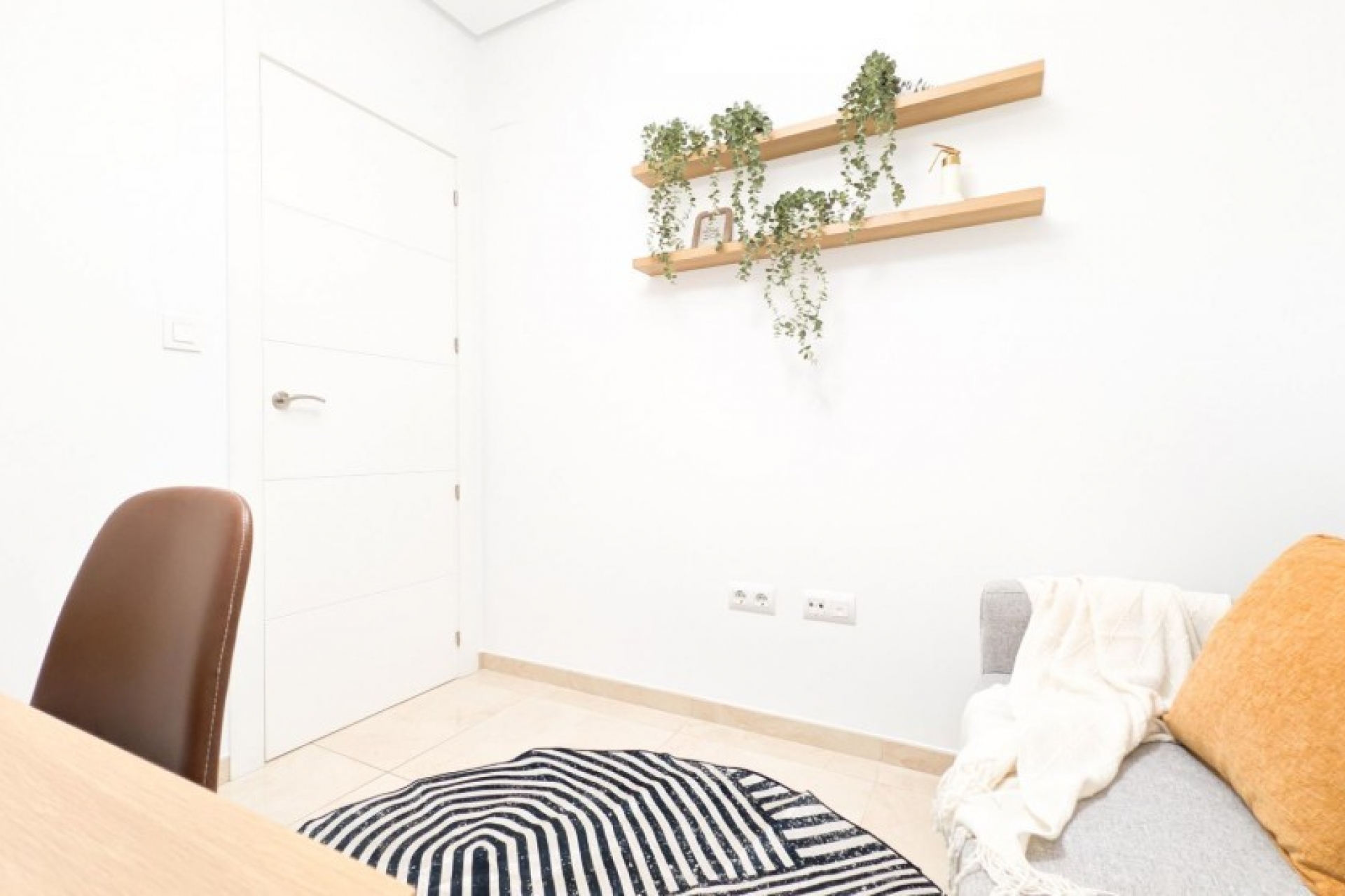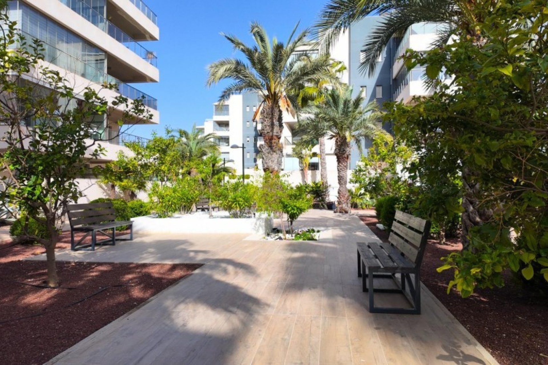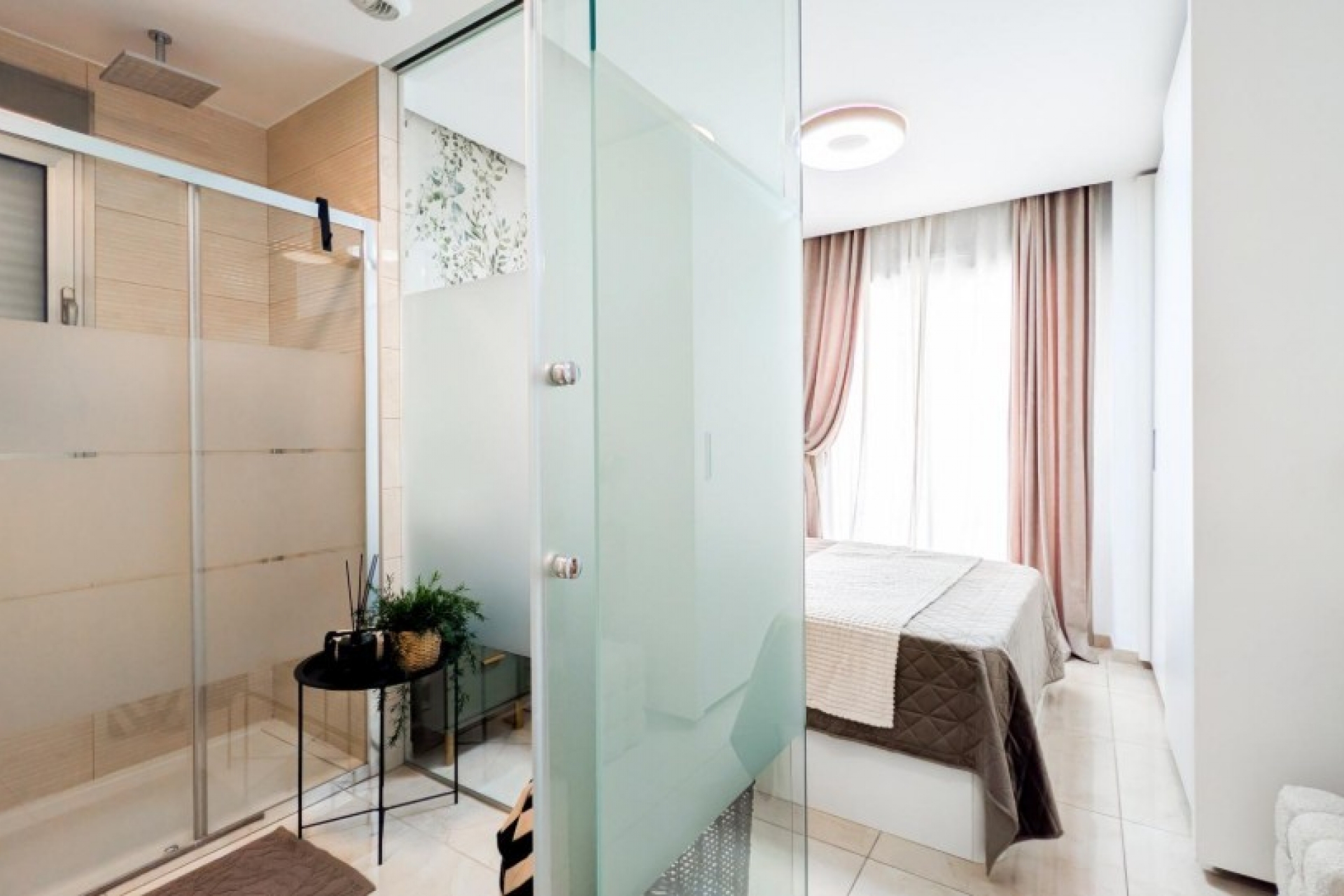 Posiada trzy sypialnie, dwie łazienki oraz kuchnię połączoną z salonem, z którego można wyjść na prywatny taras.