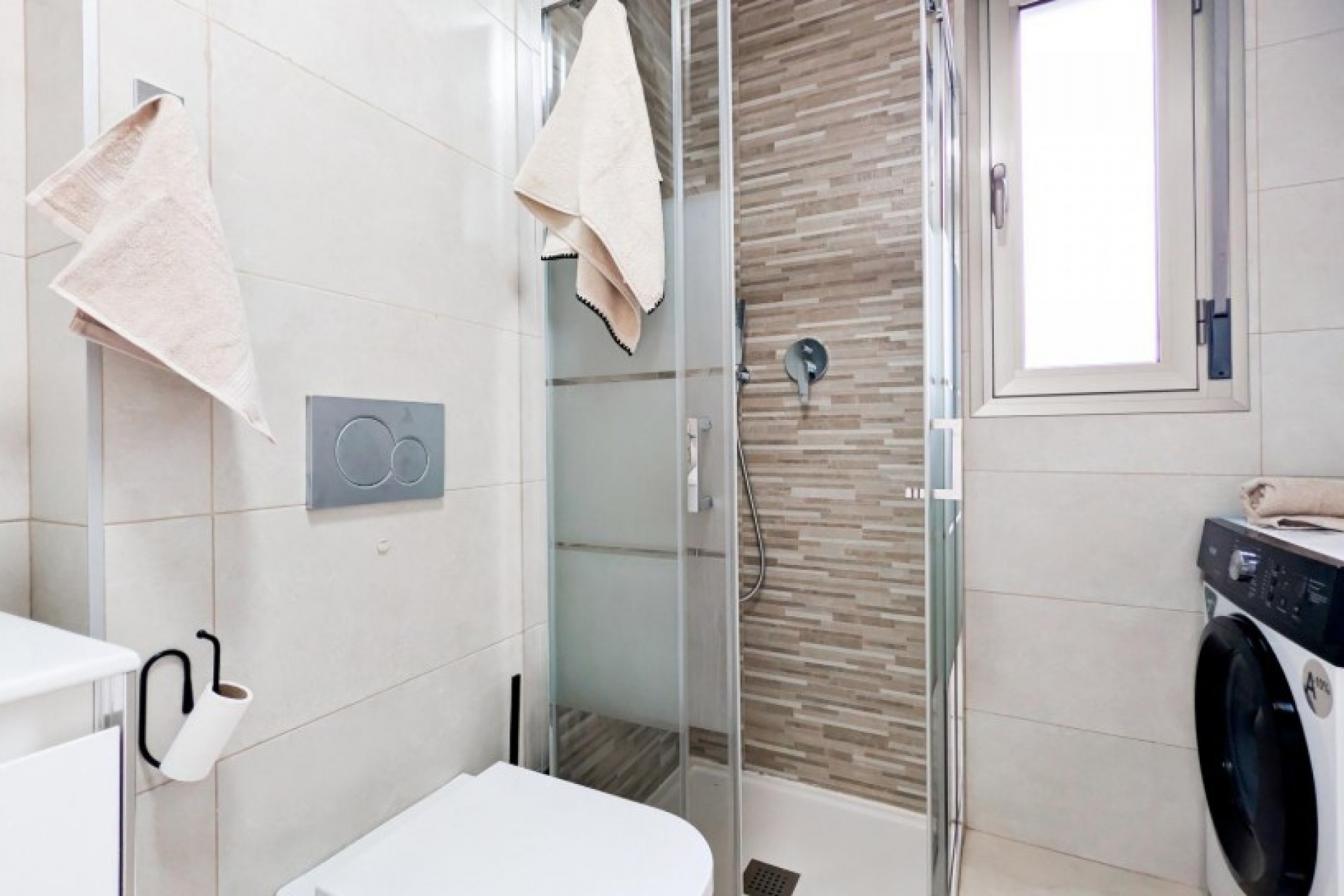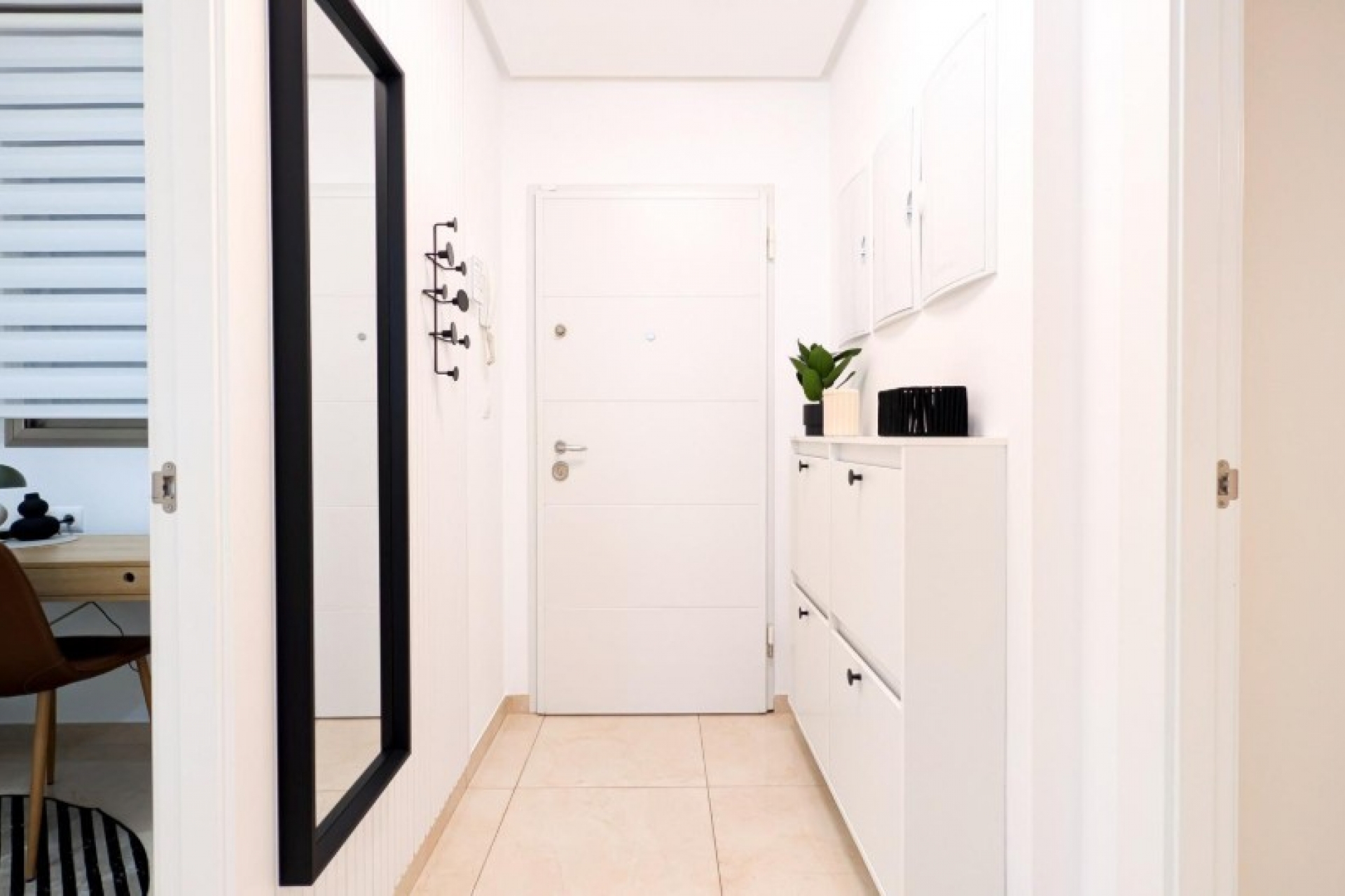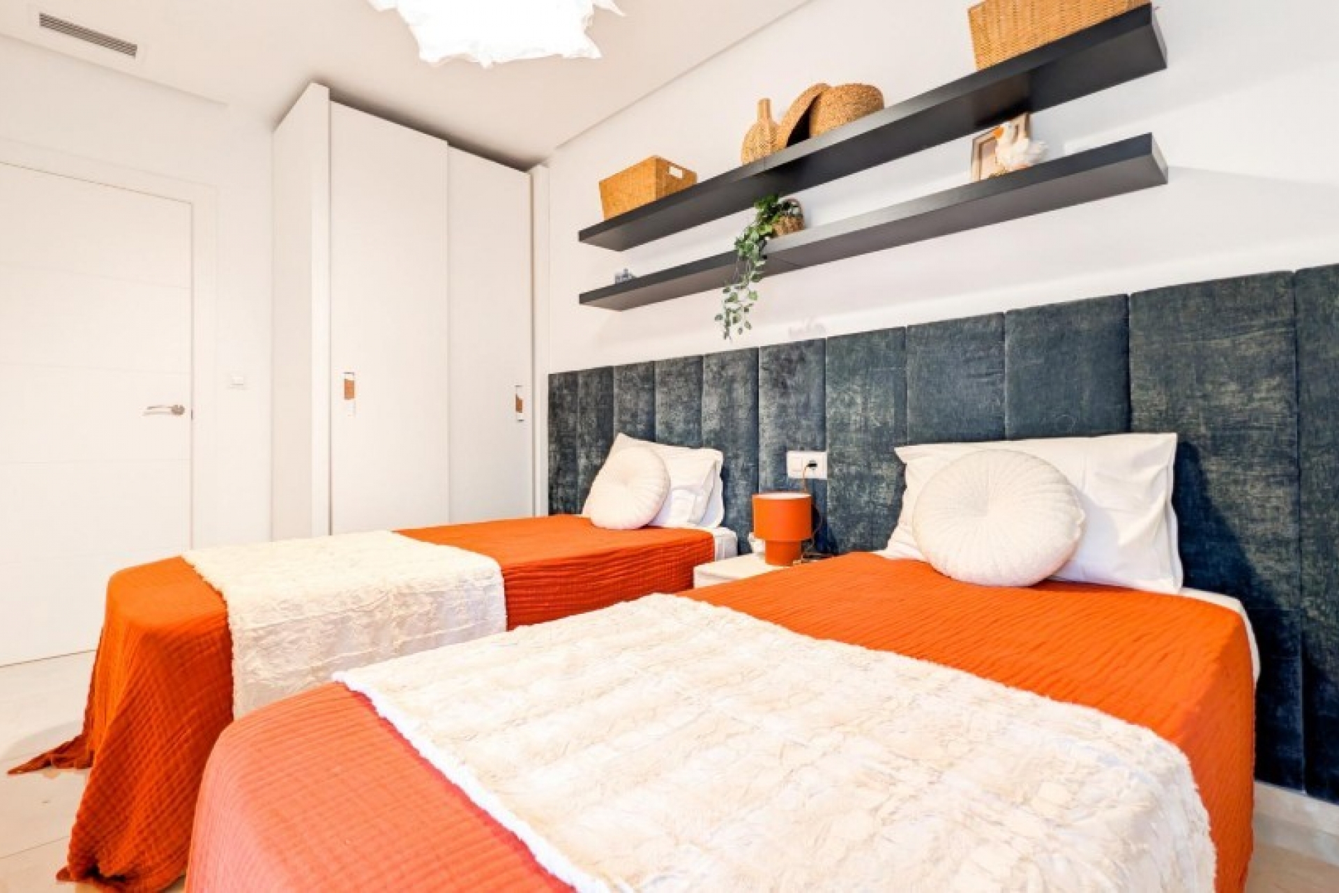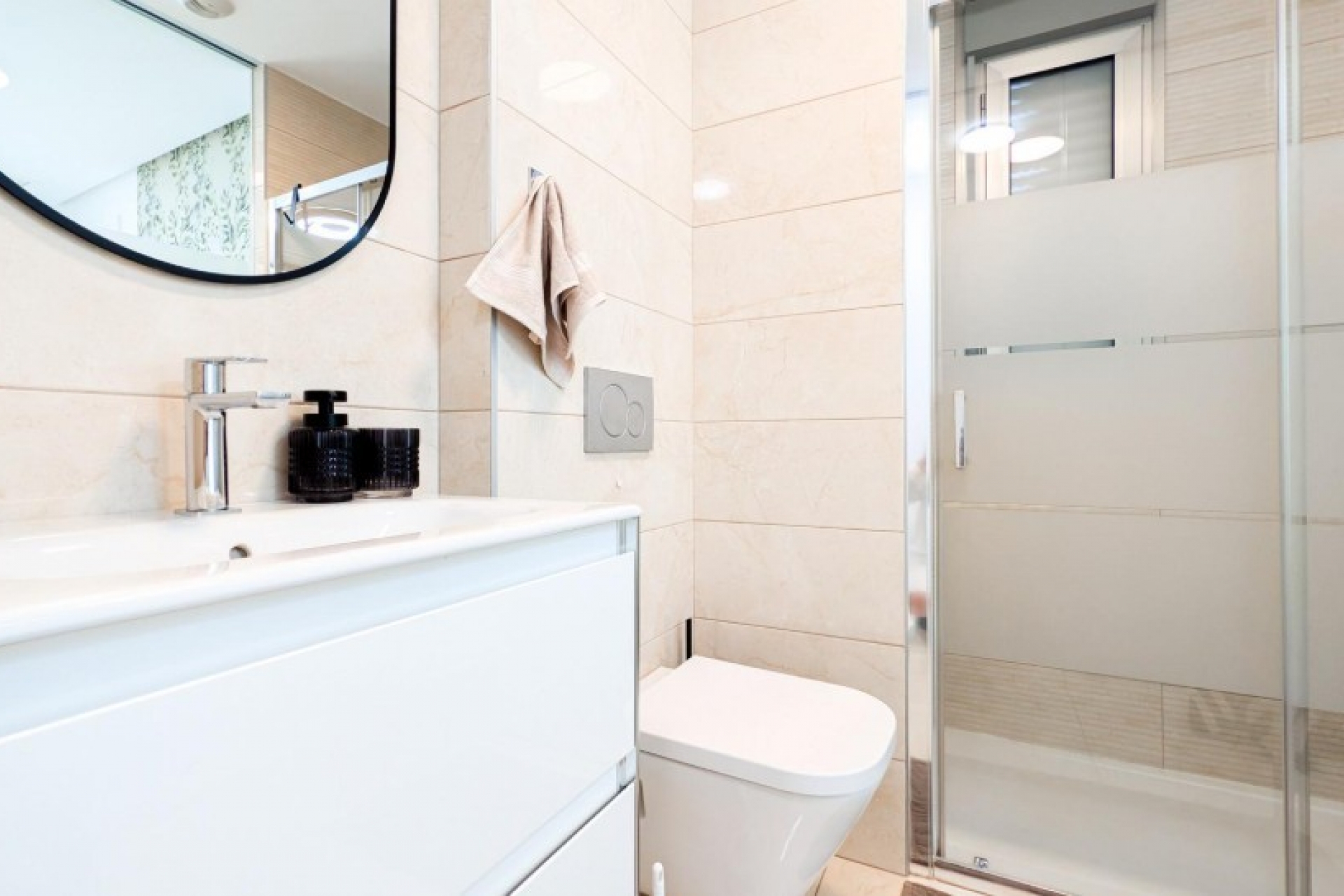 Posiada trzy sypialnie, dwie łazienki oraz kuchnię połączoną z salonem, z którego można wyjść na prywatny taras.