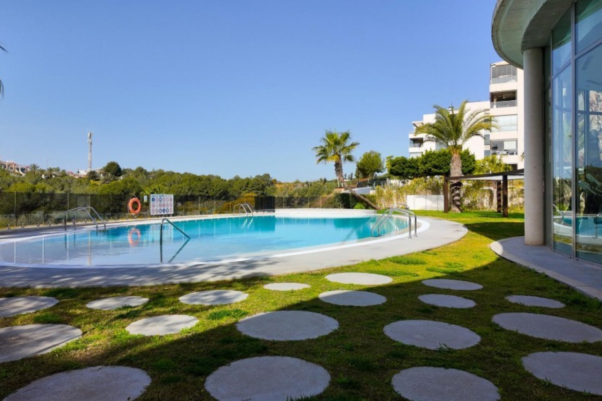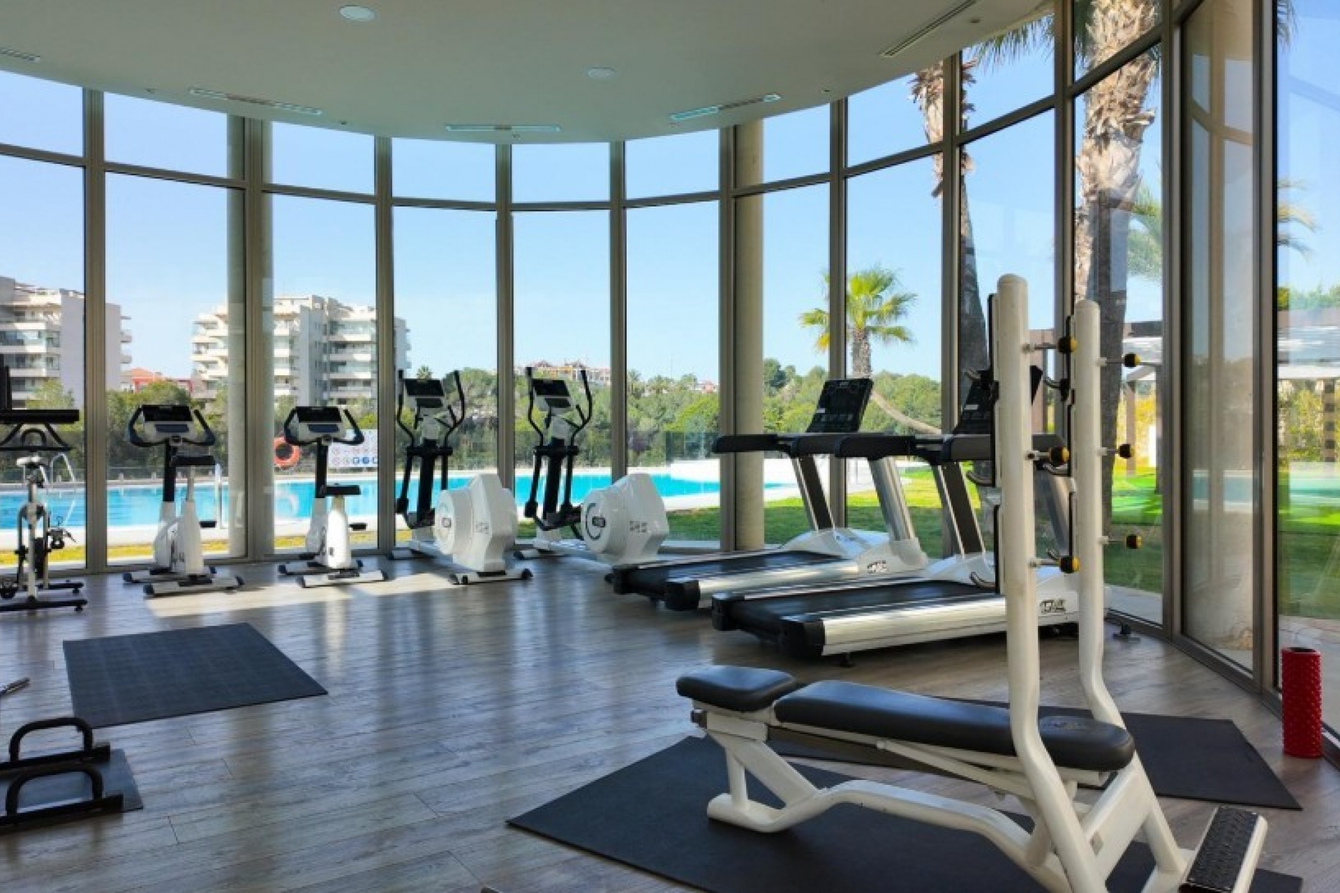 Na terenie kompleksie znajdują się trzy baseny, w tym jeden w zamkniętej przestrzeni wewnętrznej, gdzie znajduje się również sauna i siłownia.