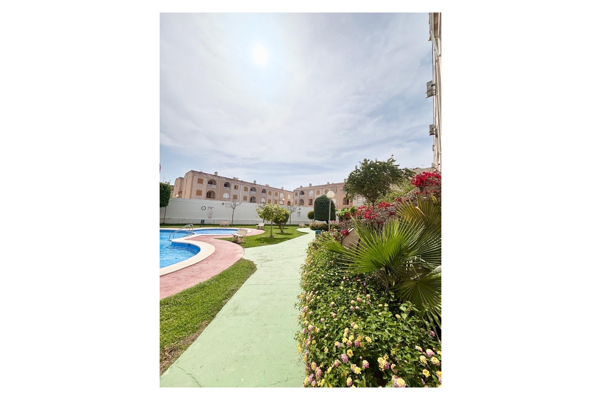 Basen wspólny otoczony zielenią – idealny na ochłodę w upalne dni. Wspólne solarium – przestrzeń do opalania z panoramicznym widokiem. Bliskość natury i morza: Zaledwie kilka minut spacerem dzieli Cię od spokojnej Playa del Acequión. Plaża ta słynie z łagodnego zejścia do wody, pięknego pasażu i świetnych restauracji dostępnych przez cały rok