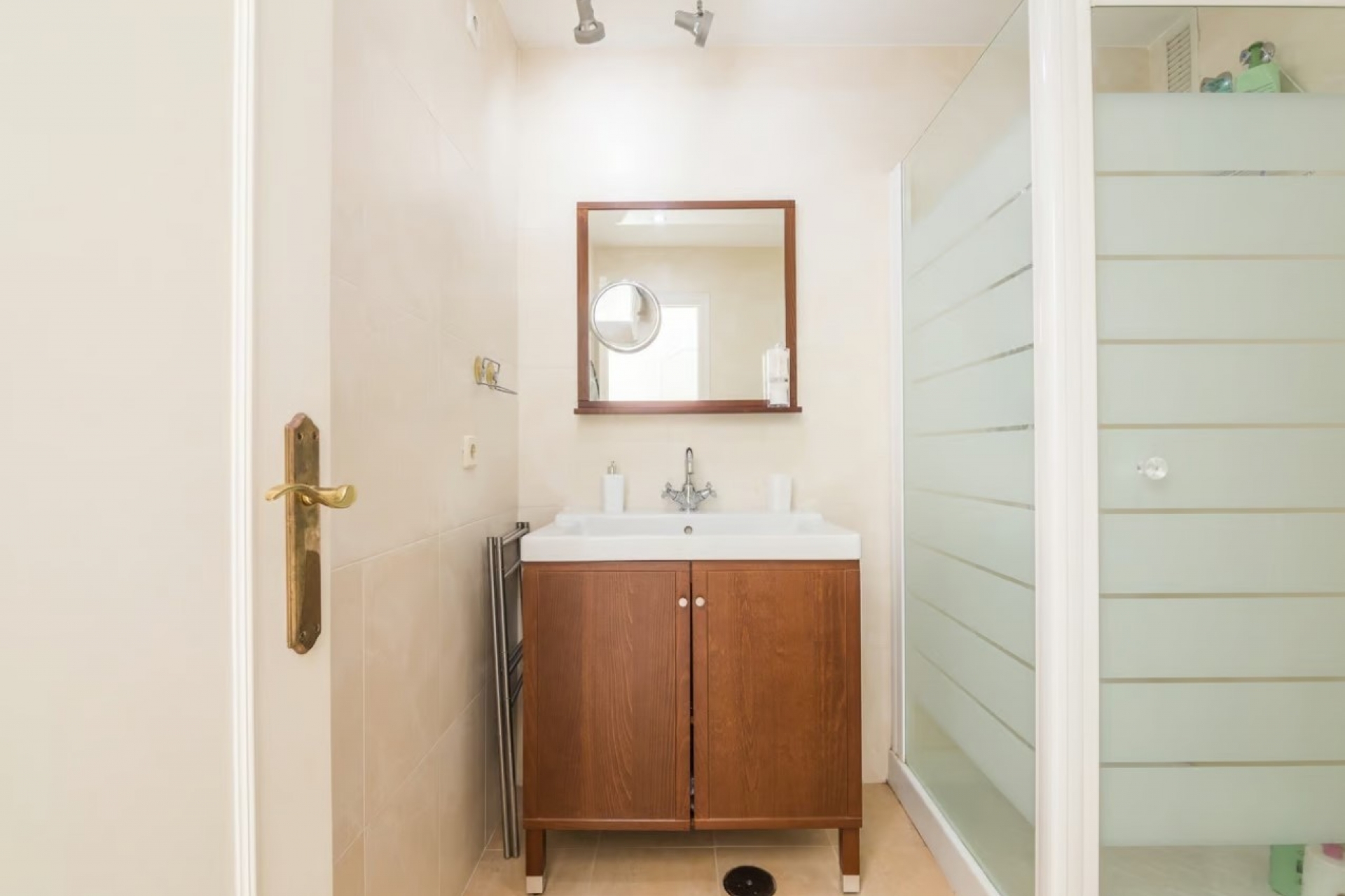 The second bathroom is accessible from the corridor.