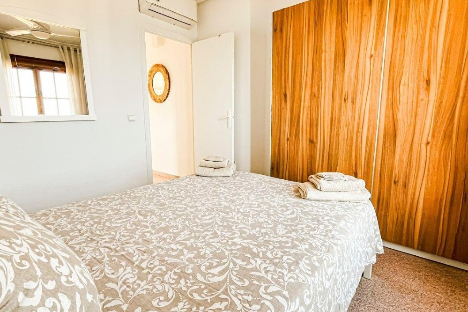 The apartment is located in a quiet area within a gated community offering a swimming pool and parking spaces. Additional features include air conditioning, ensuring year-round thermal comfort.