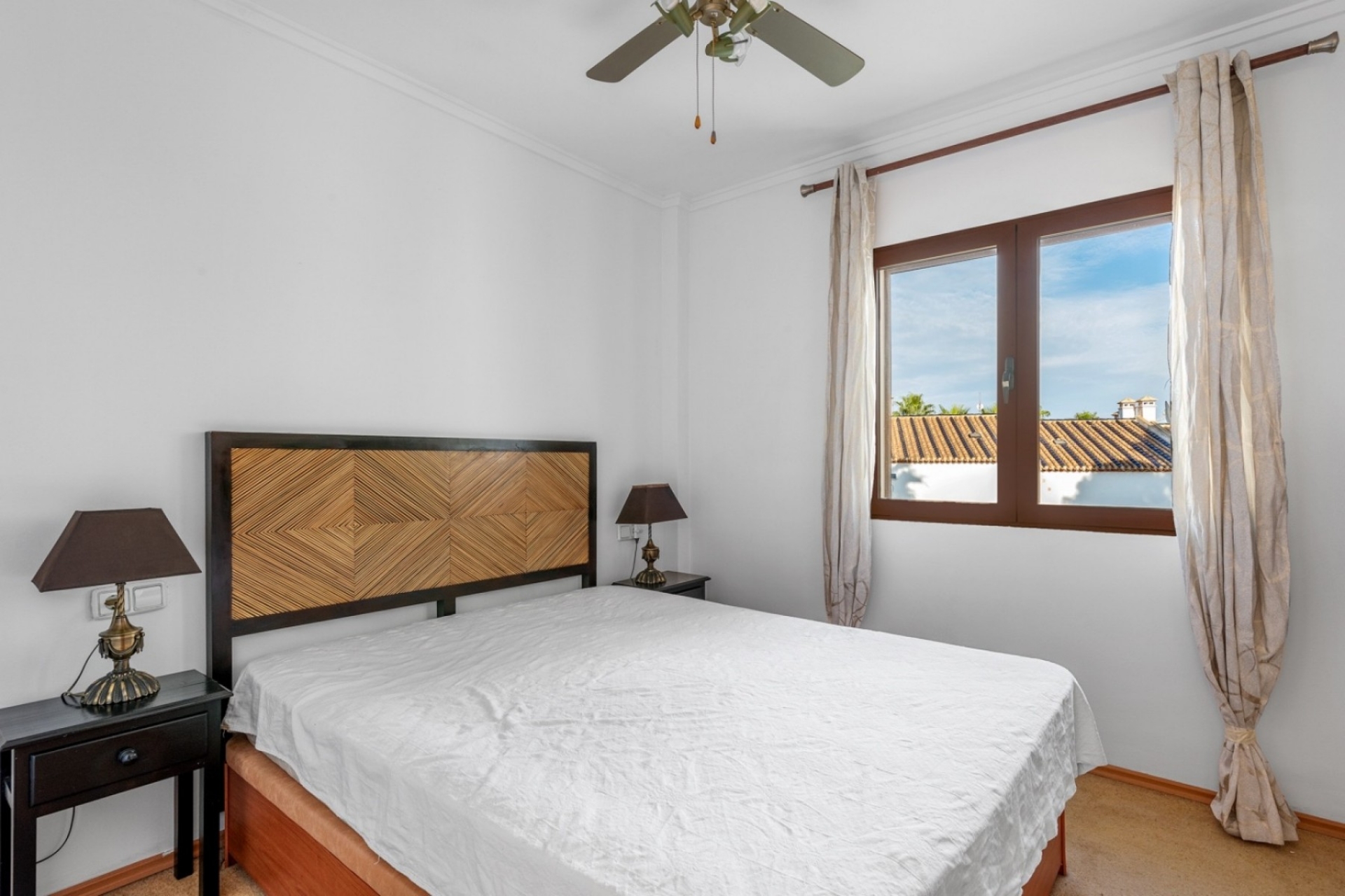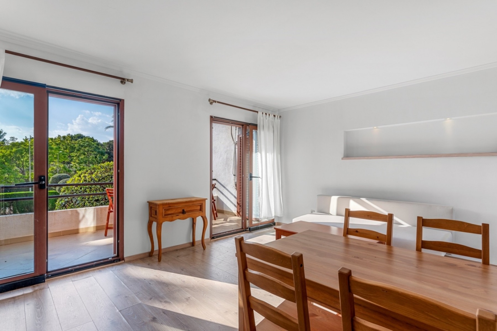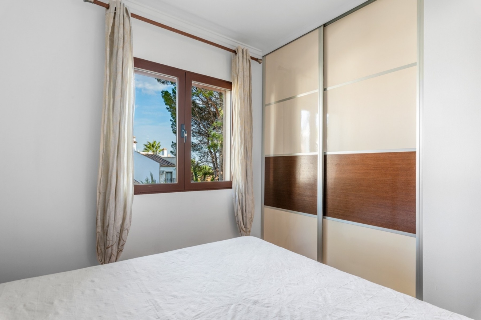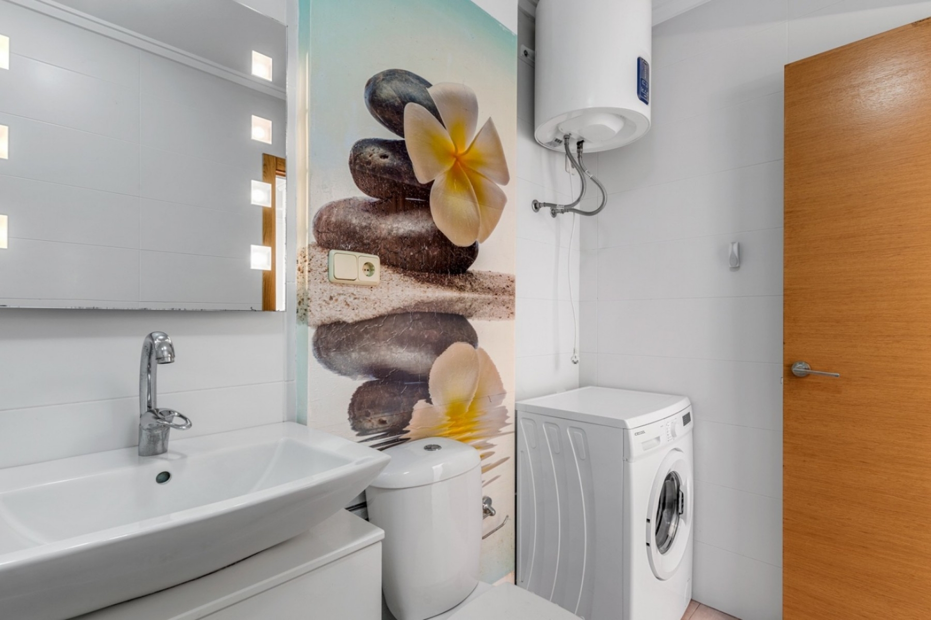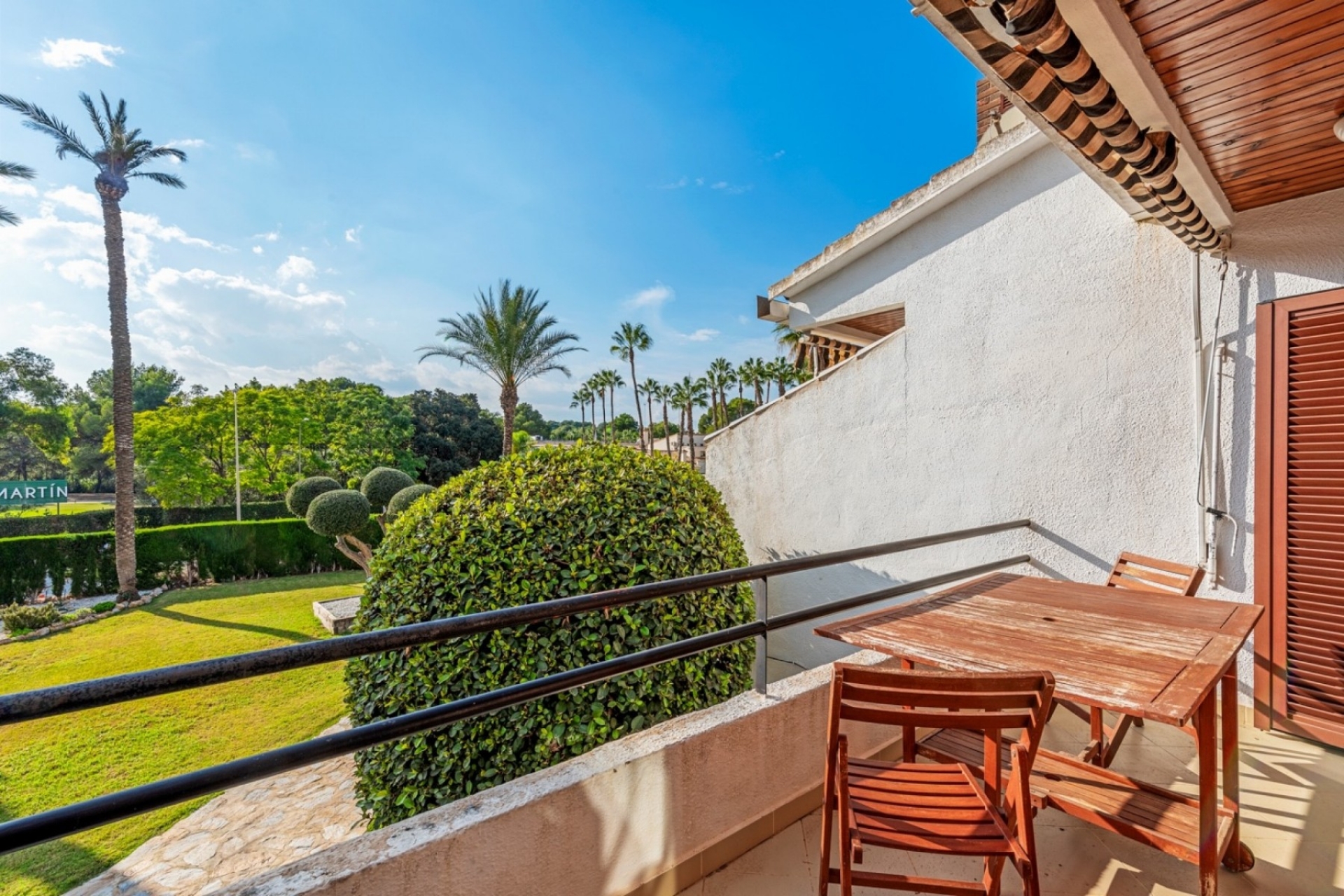 Apartment has one bedroom, one bathroom and an open plan living room and kitchen. The bedroom is exterior and has a built-in closet and ceiling fan. The hall also has a built-in closet next to the entrance. The living room has access to a 10.31 balcony with great views of the green communal gardens. The apartment, located on the second floor, has air conditioning. The kitchen and bathroom have been renovated. The residential is very close to the golf course of Villamartin and has communal parking under canopy and large landscaped areas.