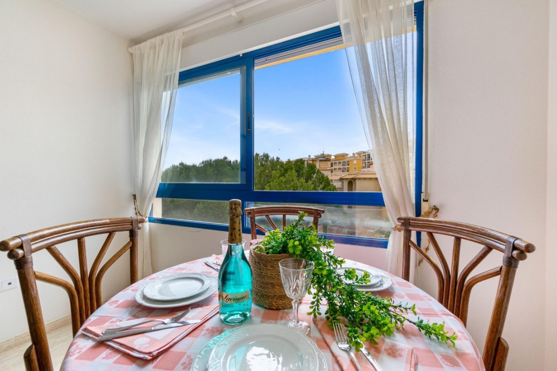 Beautiful apartment with unobstructed views in one of the most exclusive parts of Campoamor. It has two bedrooms with built-in closets, a bright living room with dining area, a fully equipped open plan kitchen and a bathroom. The ~Association offers a wide range of services: a swimming pool, green areas, sports areas and a children's playground. The southeast orientation provides excellent natural light. The location is unbeatable, close to supermarkets, restaurants, shopping centers and golf courses. Only a 10-minute walk to Campoamor beach. OPTIONAL: utility room, €5,000.