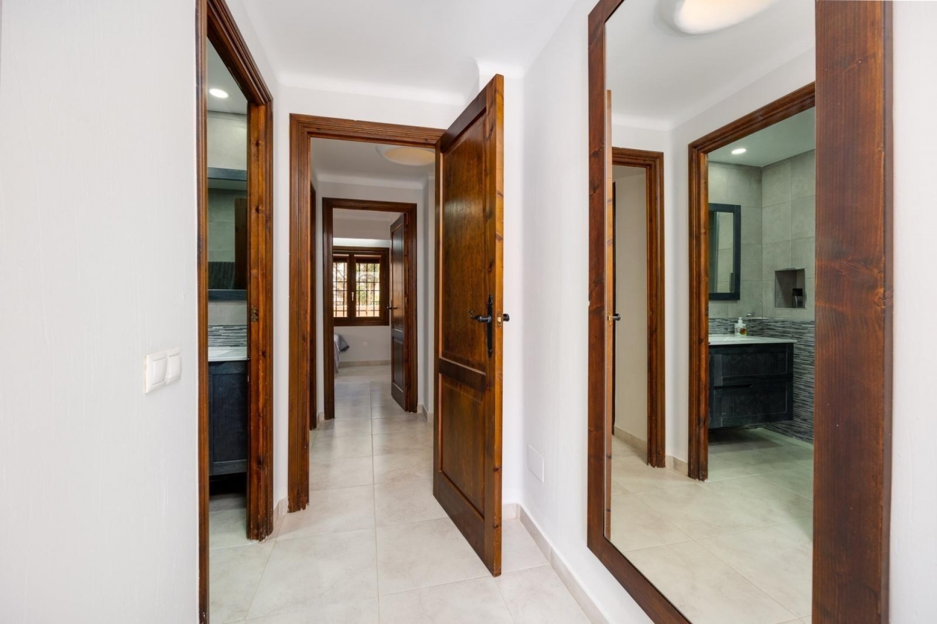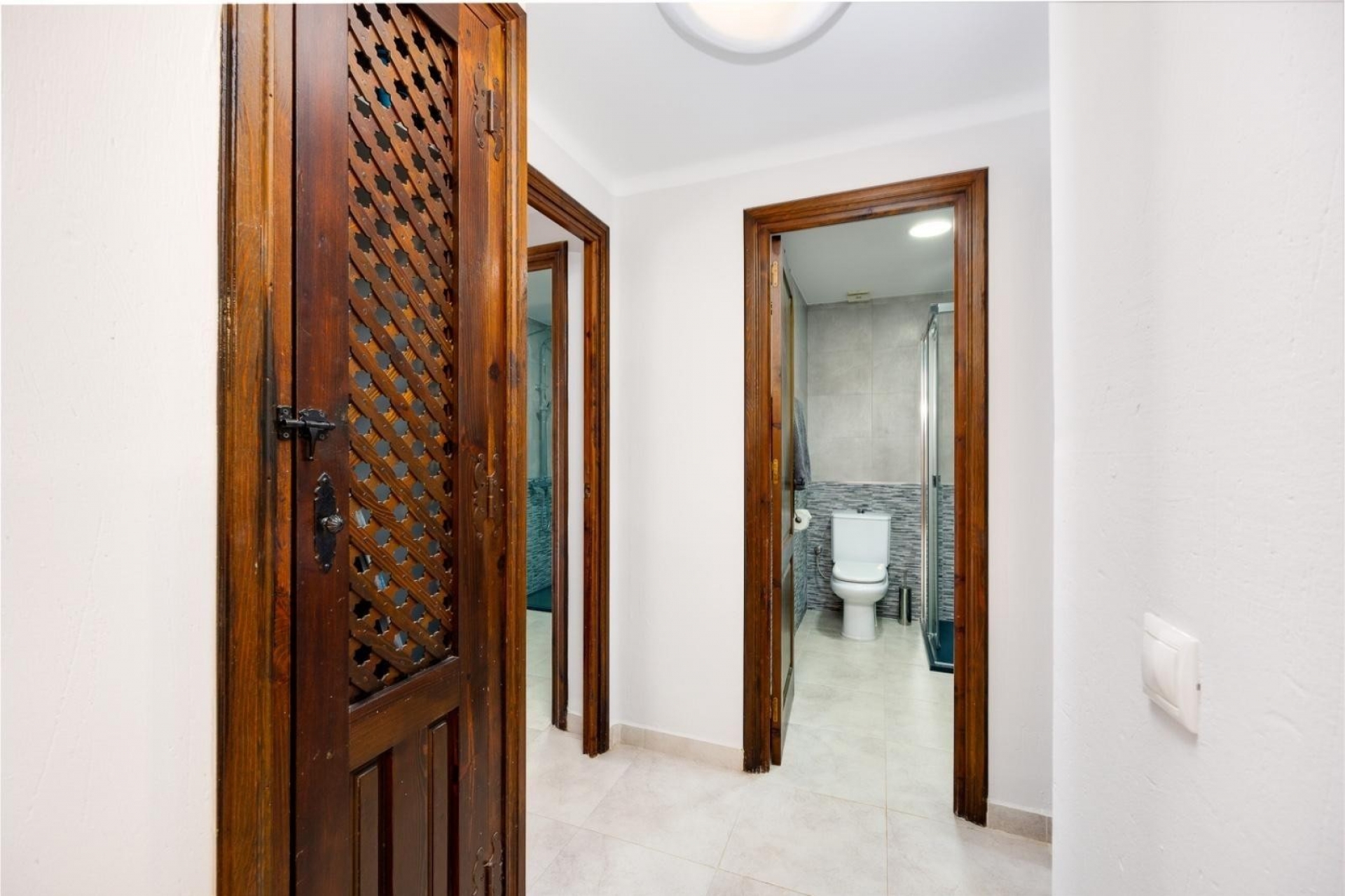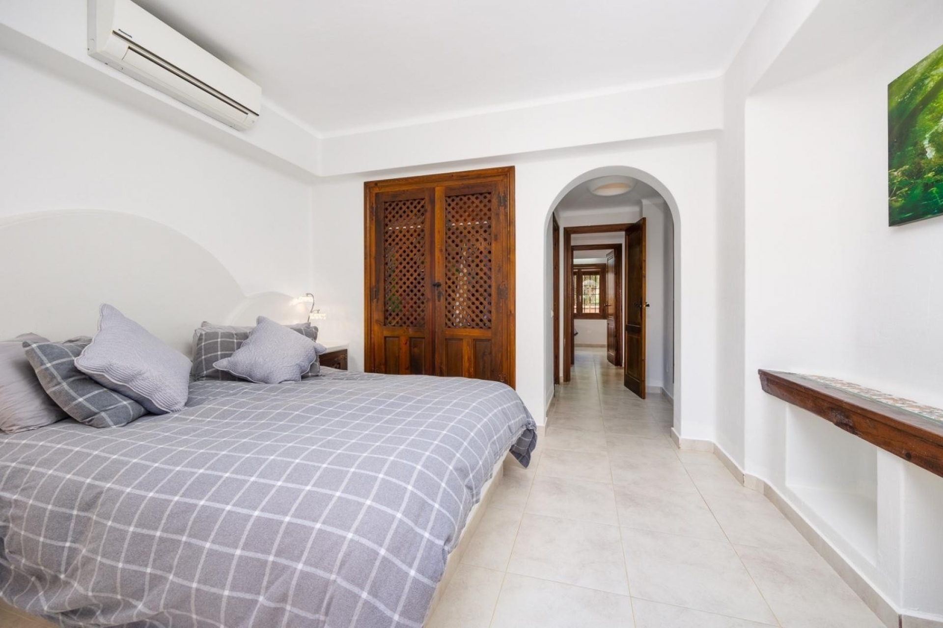 The combination of wooden beams on the ceiling and Spanish elements creates an interesting whole.