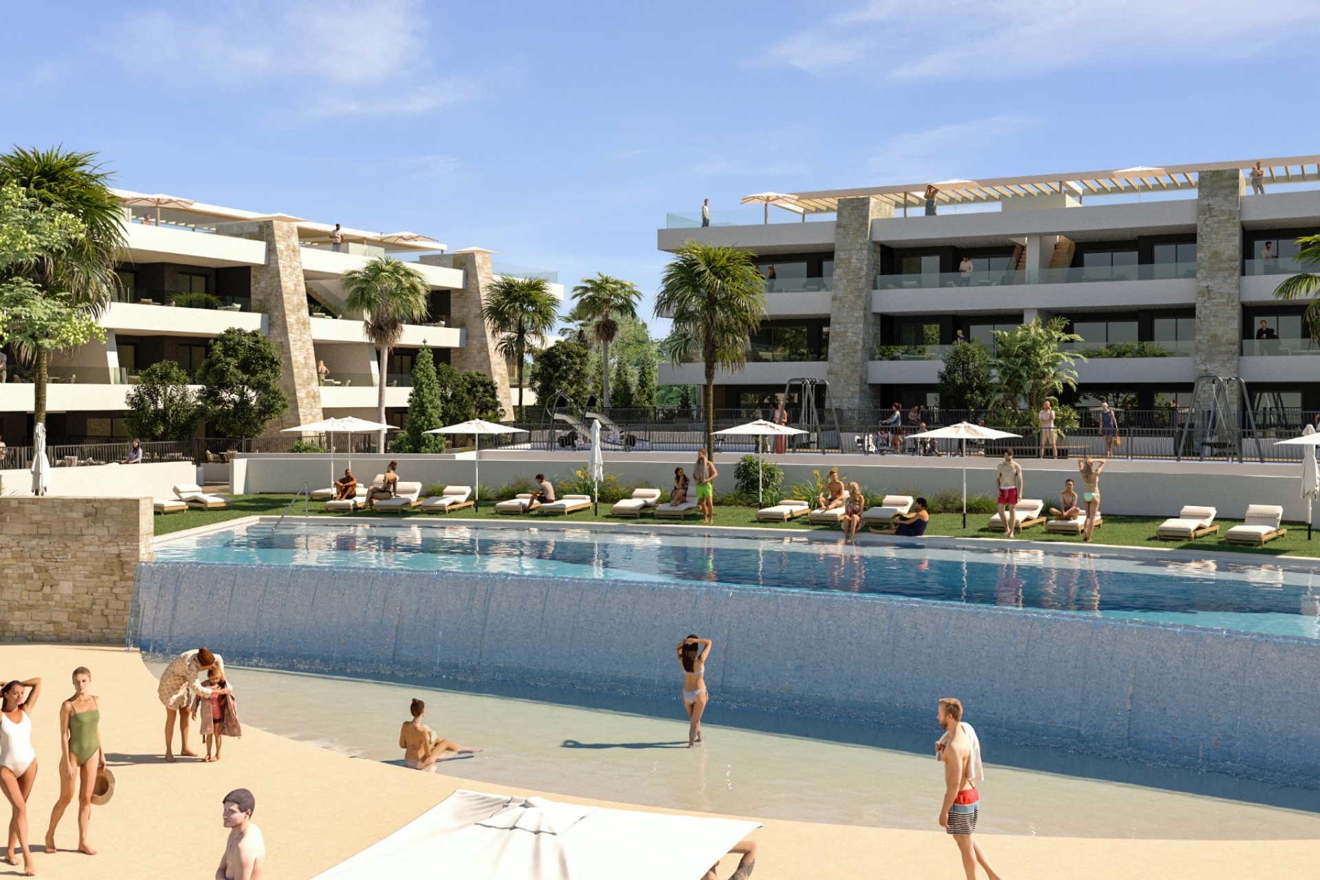 Residents have exclusive access to communal areas consisting of two swimming pools, a jacuzzi, a children's playground, bicycle parking, a petanque court and a modern co-working space.