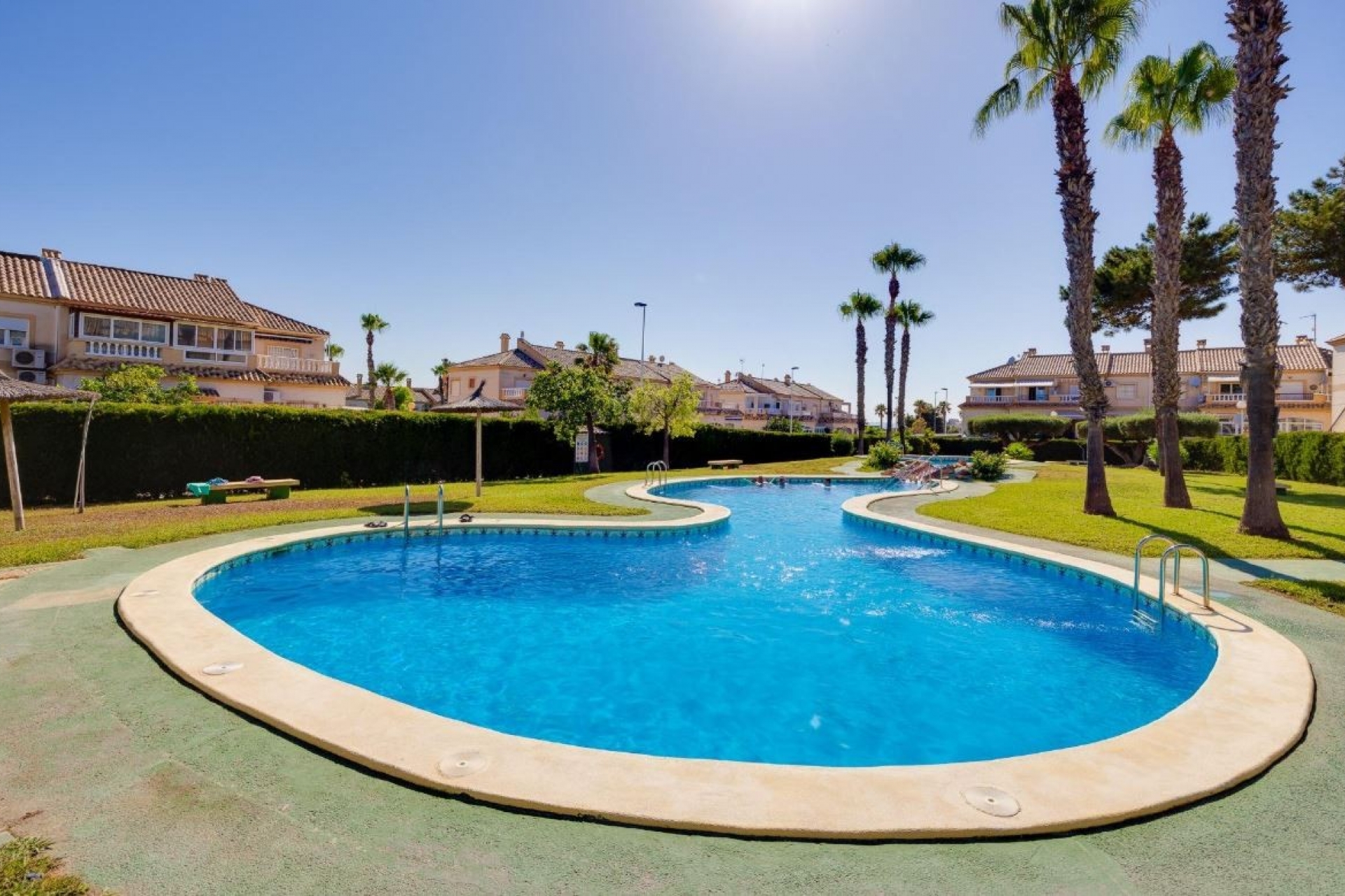 A communal swimming pool is available for residents.