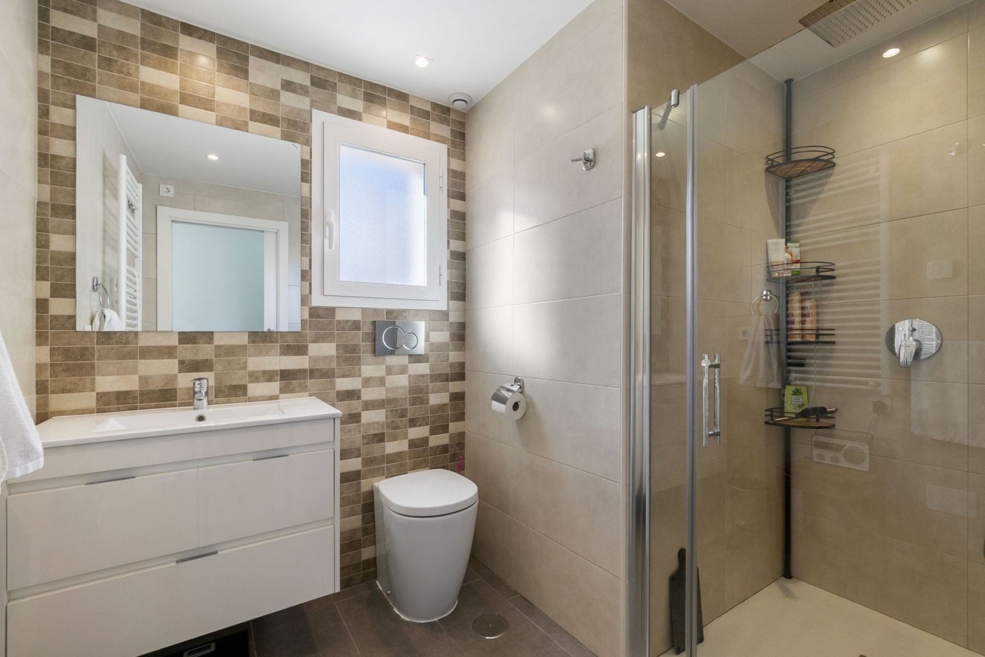The house offers two bedrooms with built-in wardrobes. Two bathrooms with underfloor heating and a well-thought-out layout with charming terraces on both sides, so you can enjoy the sun all day long.
