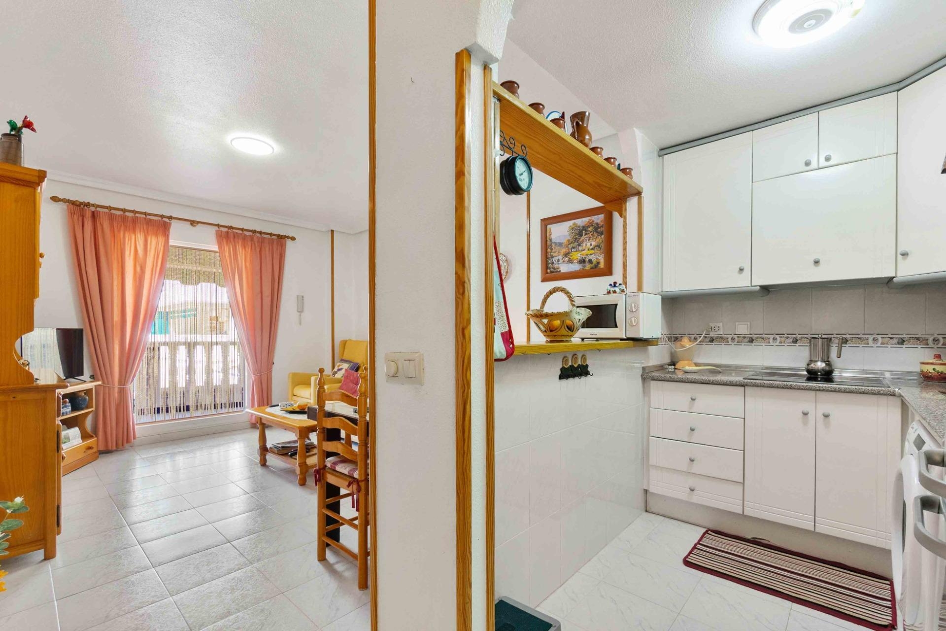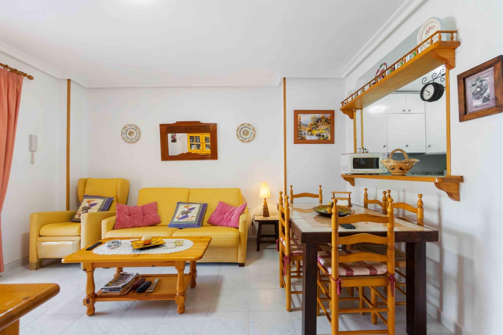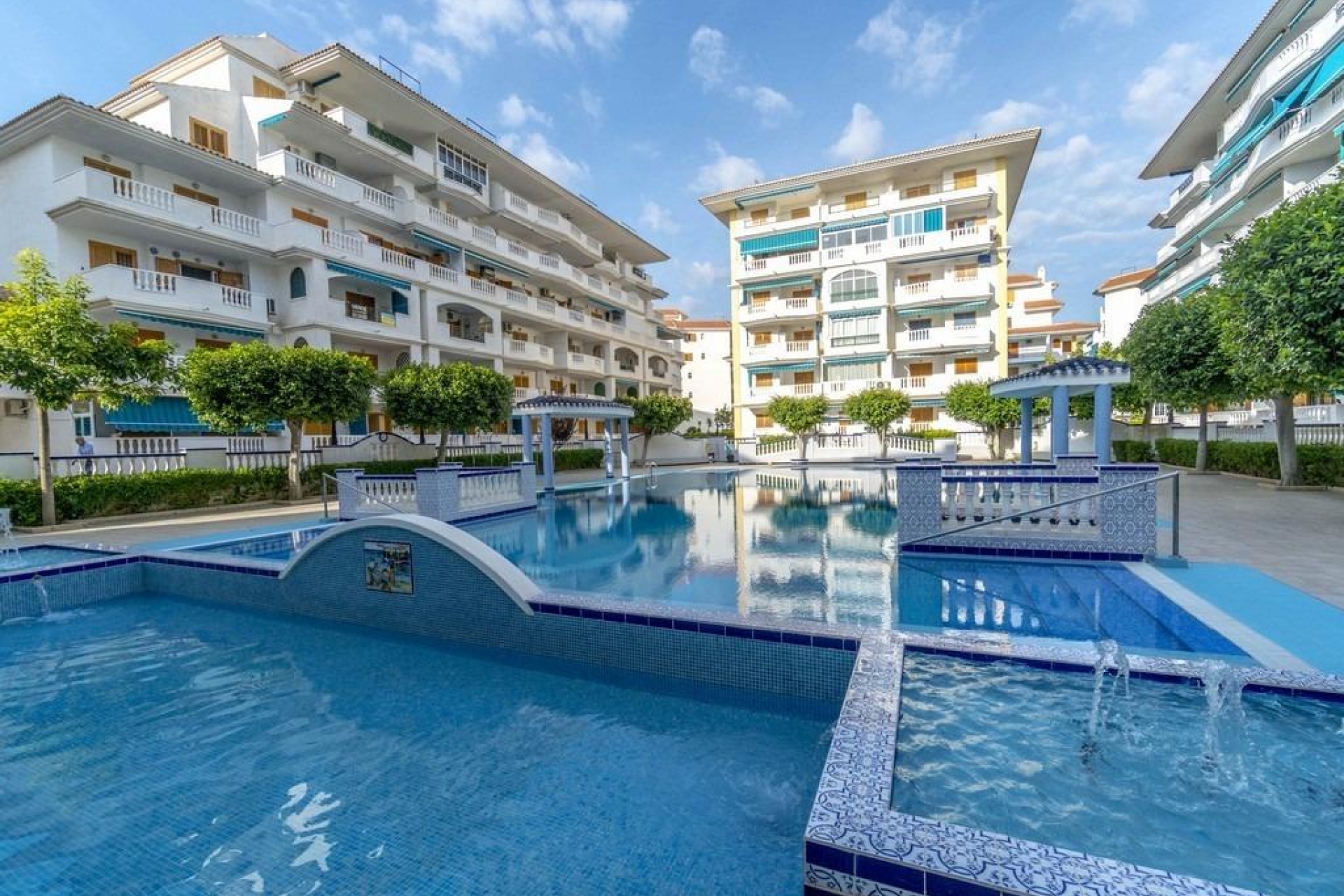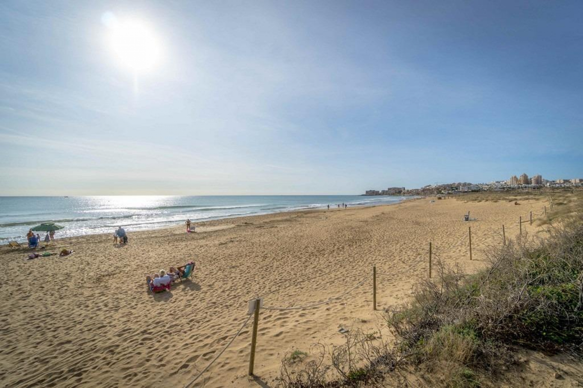 Beautiful and very well maintained ground floor apartment in Residencial Viñamar VI on La Mata Beach. With 48m2 built, the house consists of 2 bedrooms, 1 bathroom, open-plan kitchen, living-dining room and a terrace of about 10m2 with views of the residential common areas. It also has a large 30m2 patio with barbecue. Sold furnished, except personal items. A few meters from all services and just 300 meters from the sandy beach and the promenade.