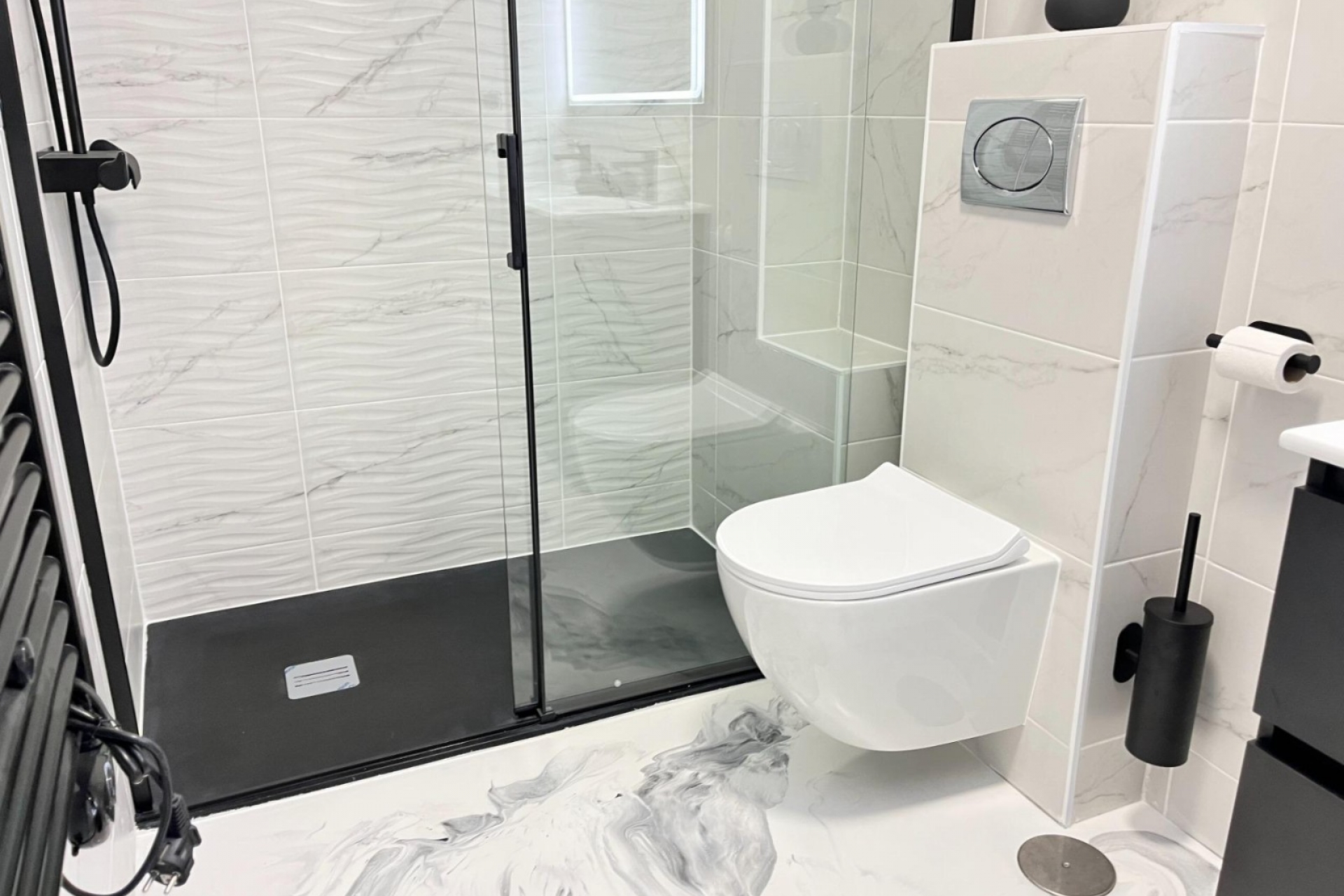 Located on the second floor of a building with an elevator, this apartment offers a built-up area of 93m2 and has been completely renovated with state-of-the-art materials. Highlighting an innovative and exclusive design, the epoxy resin flooring adds a contemporary and elegant touch to every space. Additionally, LED lights throughout the house, a fan, and hot/cold air conditioning ensure unparalleled comfort year-round.