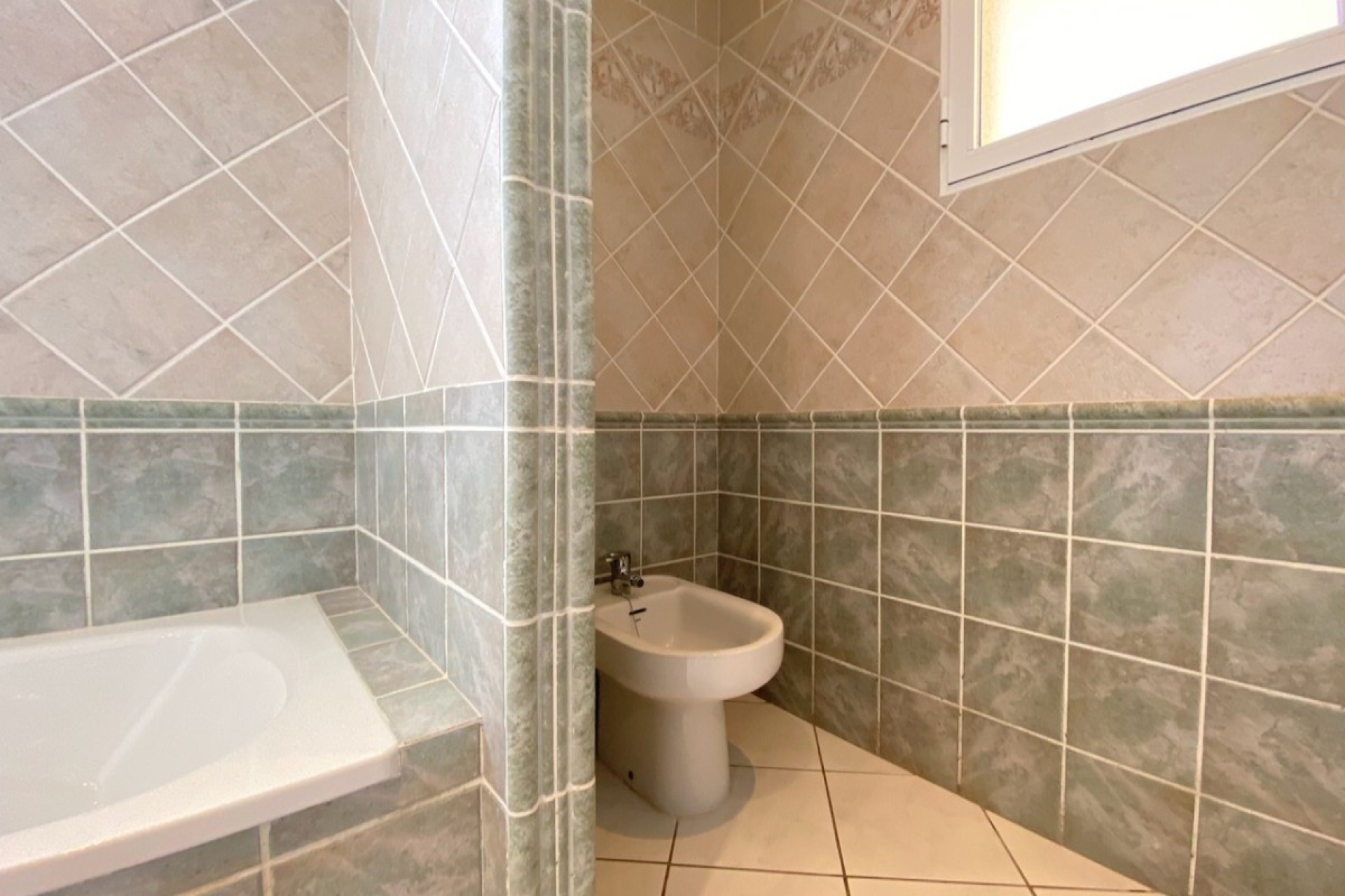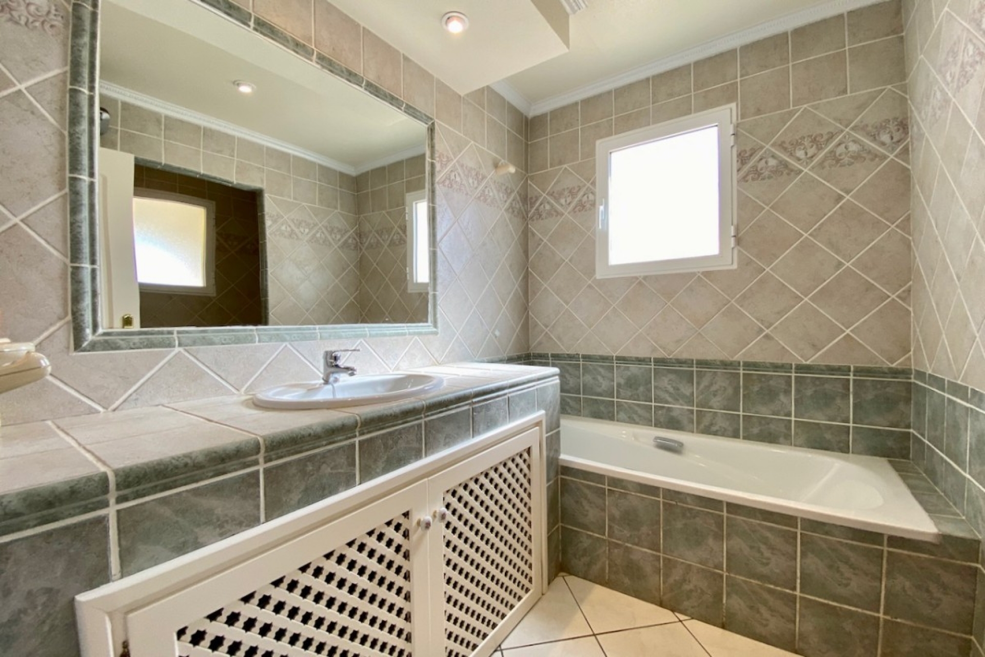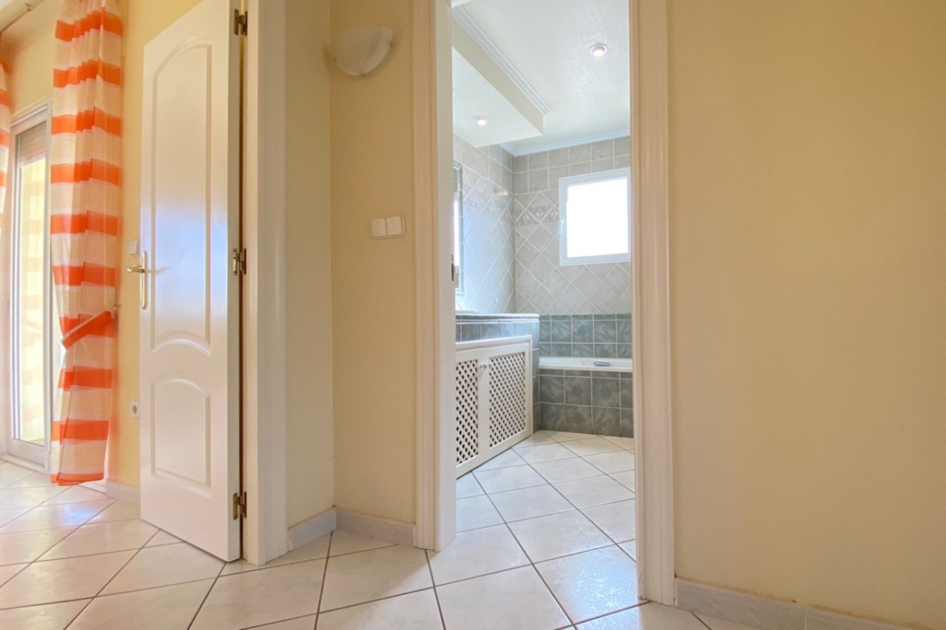 Between the 2 bedrooms on the upper floor we find the second bathroom, which is very spacious and has 2 windows.