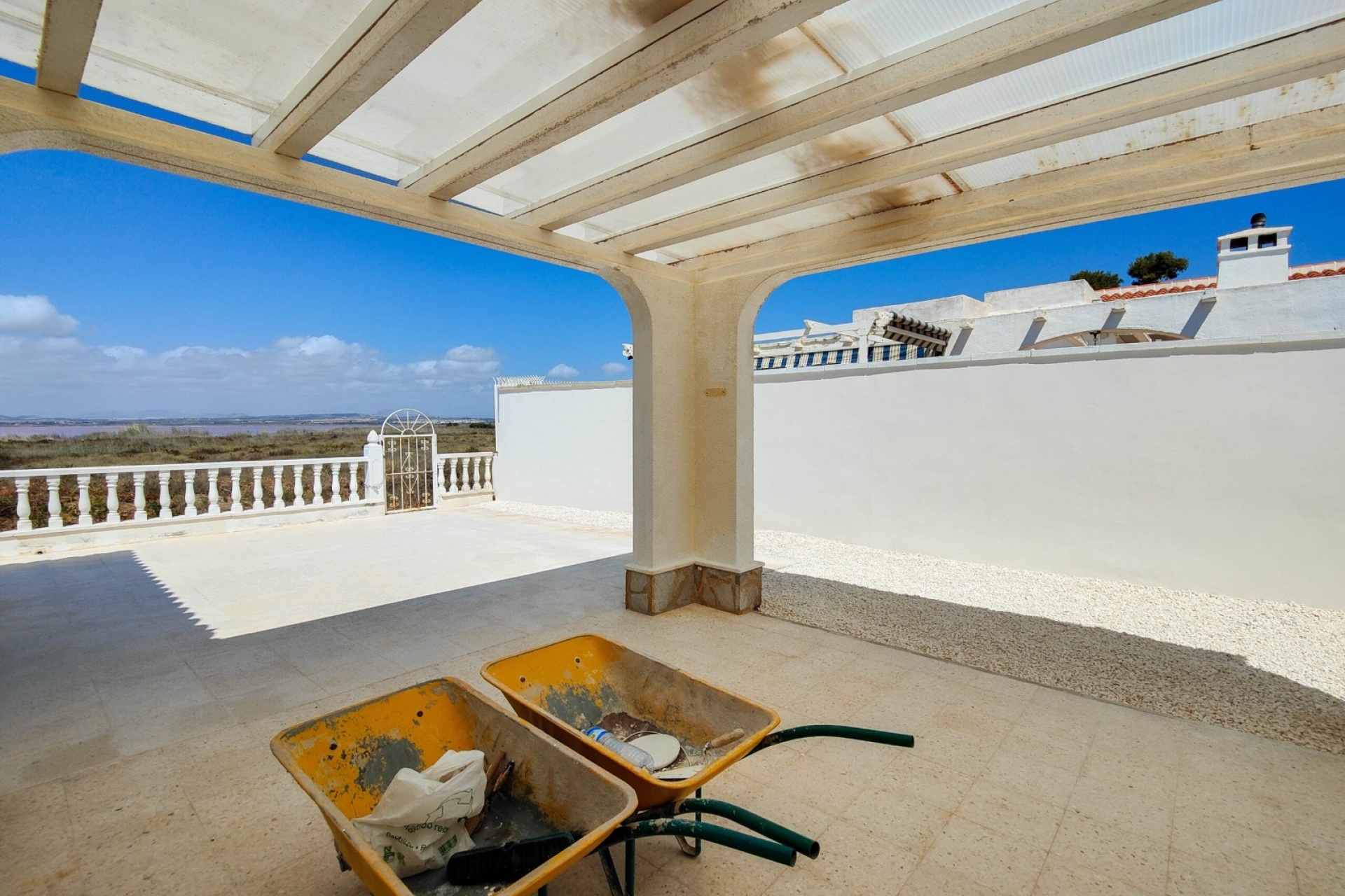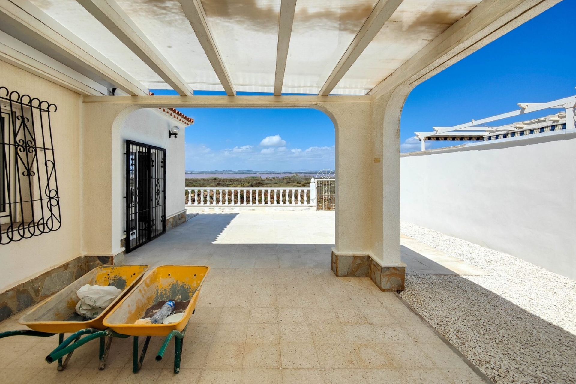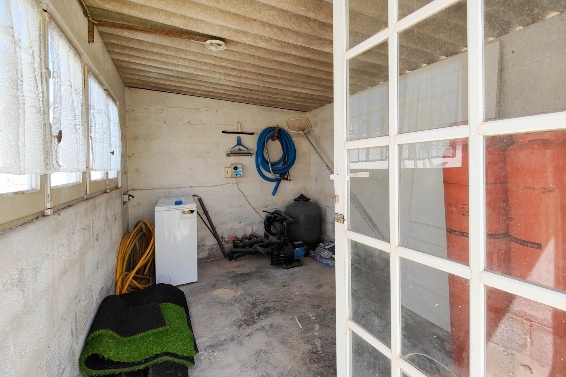 The outside space on this villa is just amazing. To the front of the property there is off road parking, a recently renovated swimming pool, a big storage room and a covered terrace looking over the pool. At the side there is a storage room where we find the water boiler. At the back of the property there is an other covered terrace and an L shaped garden looking over the salt lakes. There is also a spacious solarium.