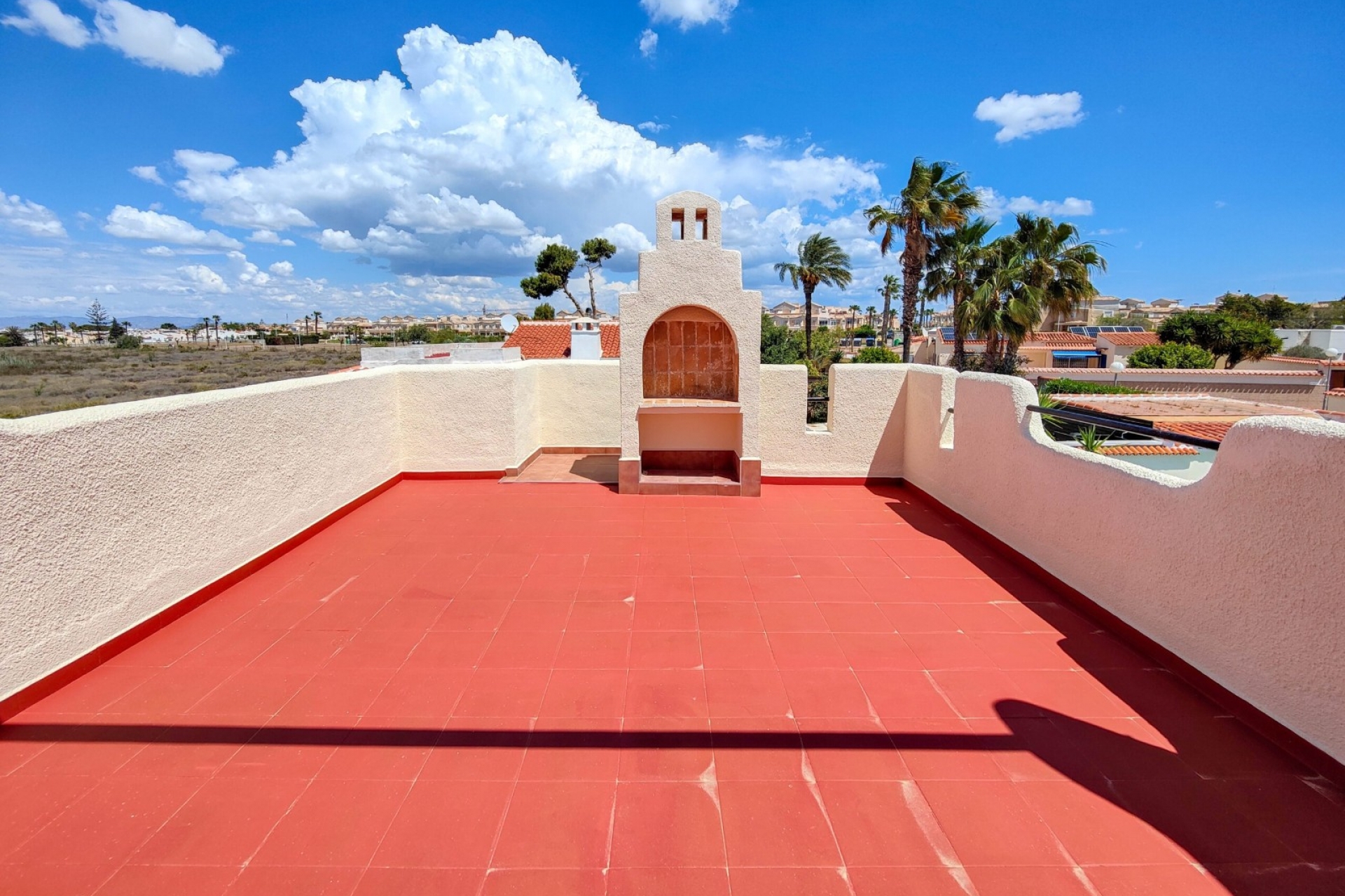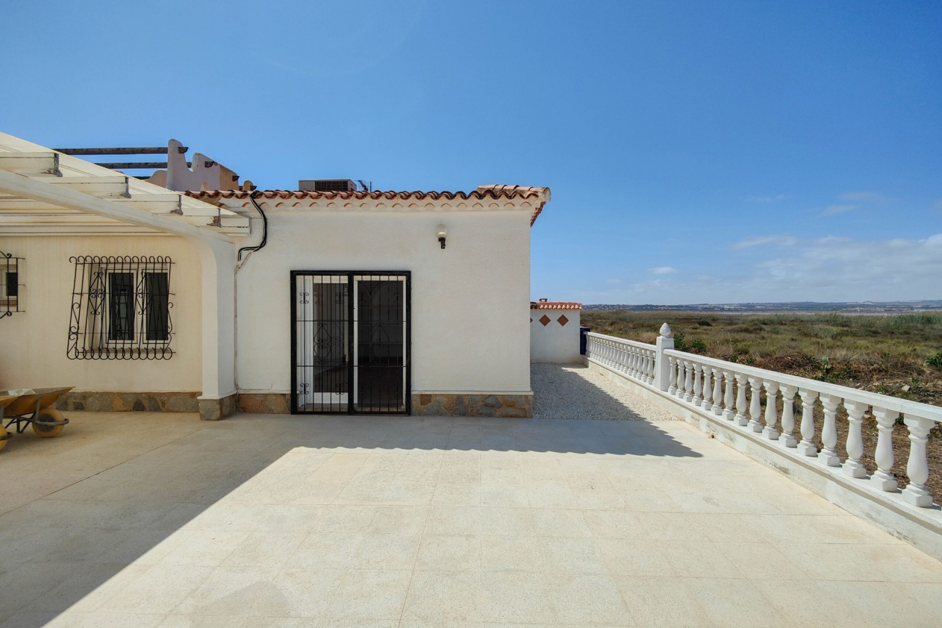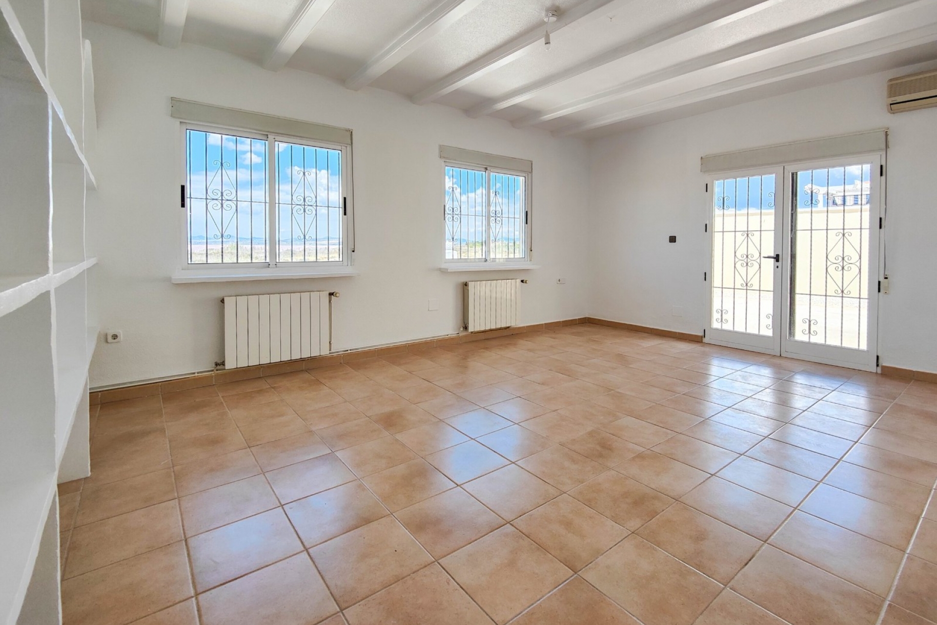 The outside space on this villa is just amazing. To the front of the property there is off road parking, a recently renovated swimming pool, a big storage room and a covered terrace looking over the pool. At the side there is a storage room where we find the water boiler. At the back of the property there is an other covered terrace and an L shaped garden looking over the salt lakes. There is also a spacious solarium.