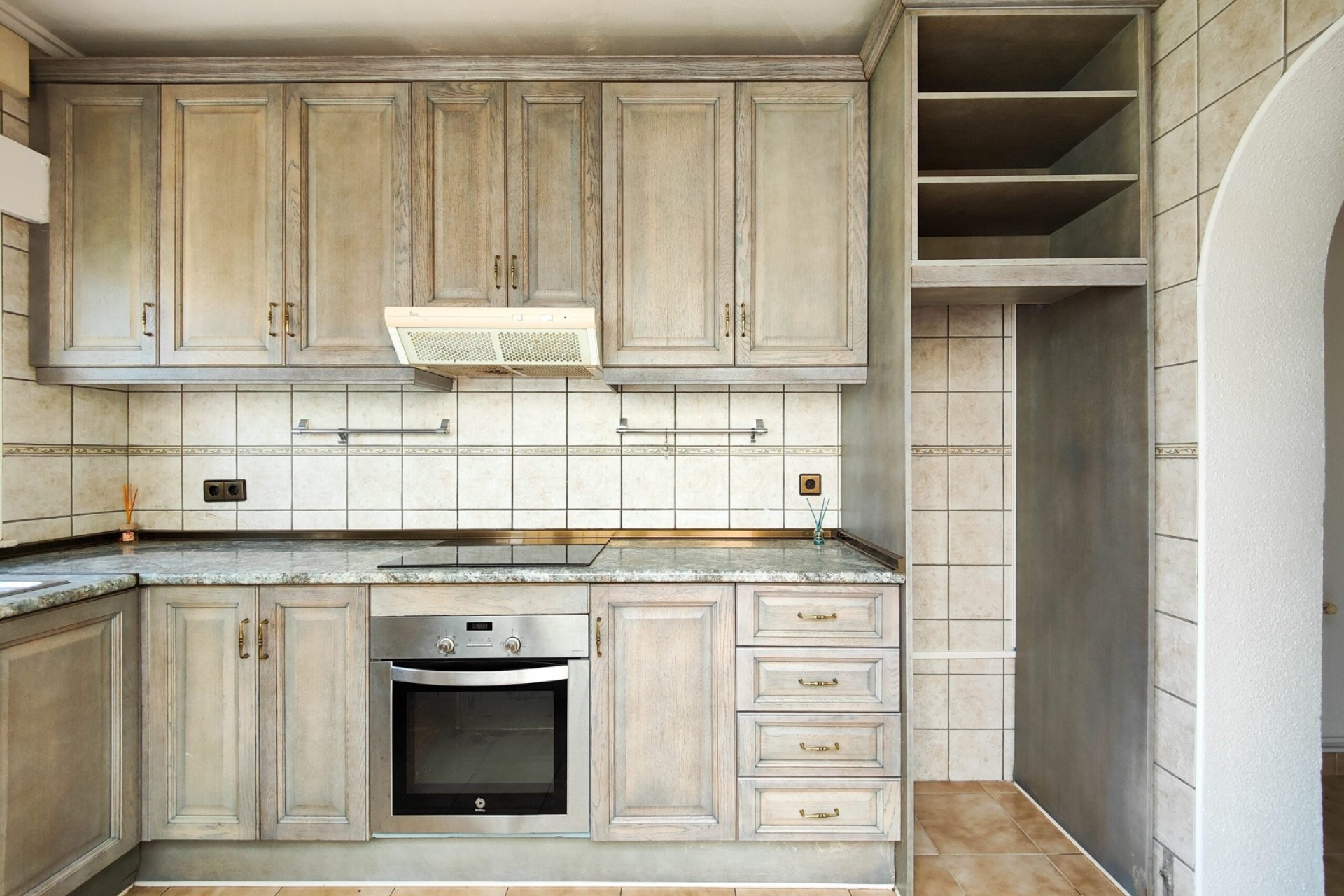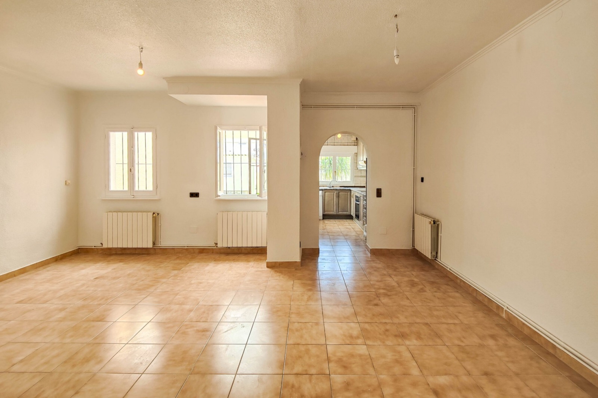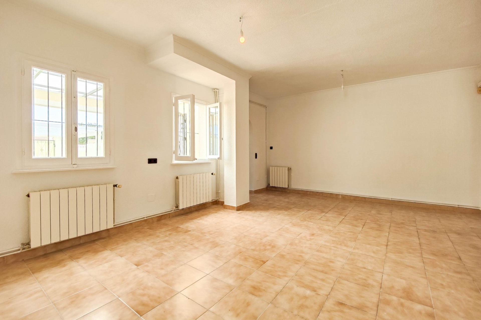 There are 2 bathrooms, an equipped kitchen with access to the front garden and a covered terrace. At the moment it has just 1 bedroom but there is a very big living space which can be easily converted in the 2nd bedroom.