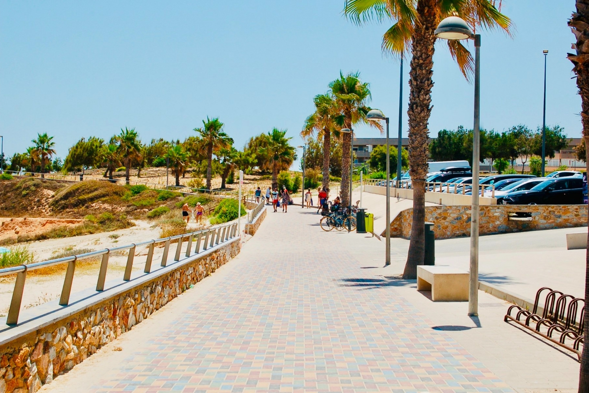 Pilar de la Horadada is a typical Spanish village in the southernmost part of the Costa Blanca. The large main street has supermarkets, many shops, restaurants and bars and some beautiful squares. The beautiful beaches of Torre de la Horadada and Mil Palmeras with fine sandy promenade are just 5 minutes away. In Pilar de la Horadada there is also a well-developed cycling and walking path network, and there is also a wide range of different sports activities. The 18-hole Lo Romero Golf Course is a short drive from the town. There is a smooth connection to the N332 and the AP7. Corvera (Murcia) and Alicante airports are 40 and 55 minutes away respectively.