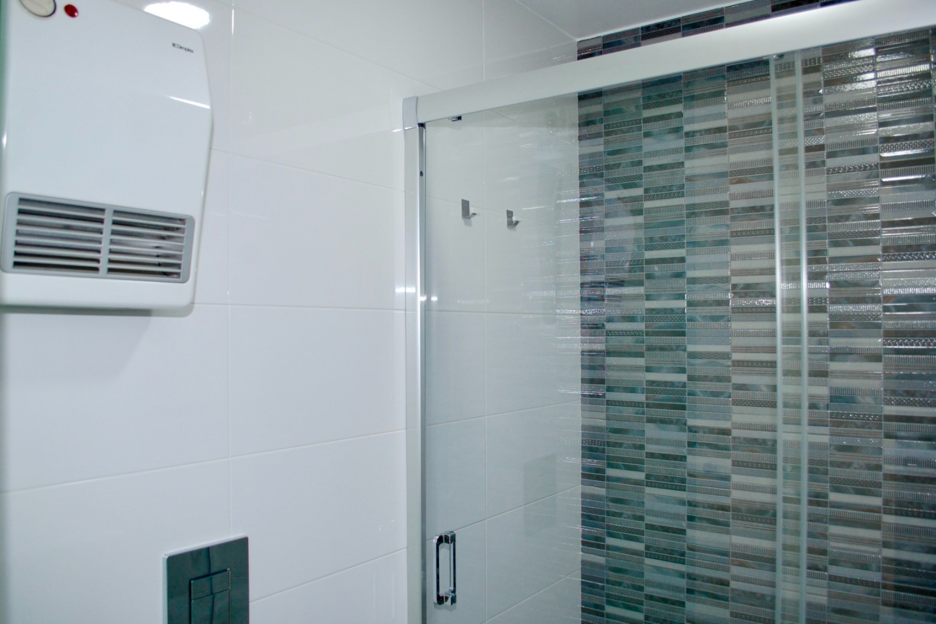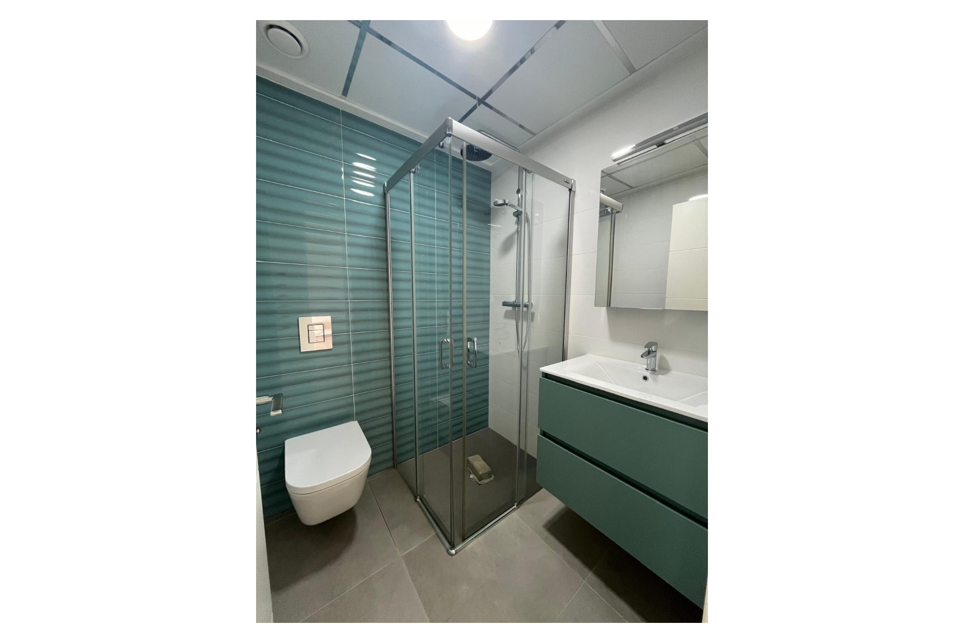 The house with south orientation is located on the ground floor. It contains 2 bedrooms, 2 bathrooms, 1 of which is ensuite, an open kitchen and a living-dining room. Each room has air conditioning, has a modern finish and is in excellent condition as it is practically new. You can enjoy a spacious terrace with private parking.