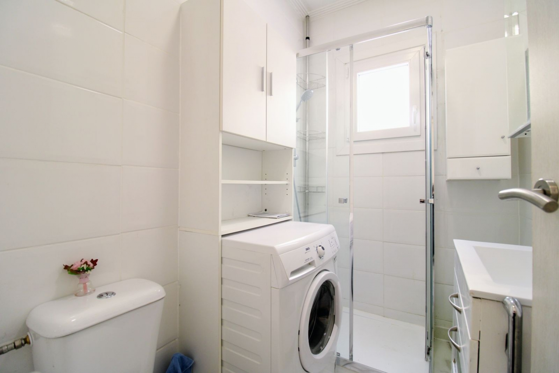 From the kitchen you can enter the back terrace which has stairs to the solarium. The communal pool area is just in front of the house.