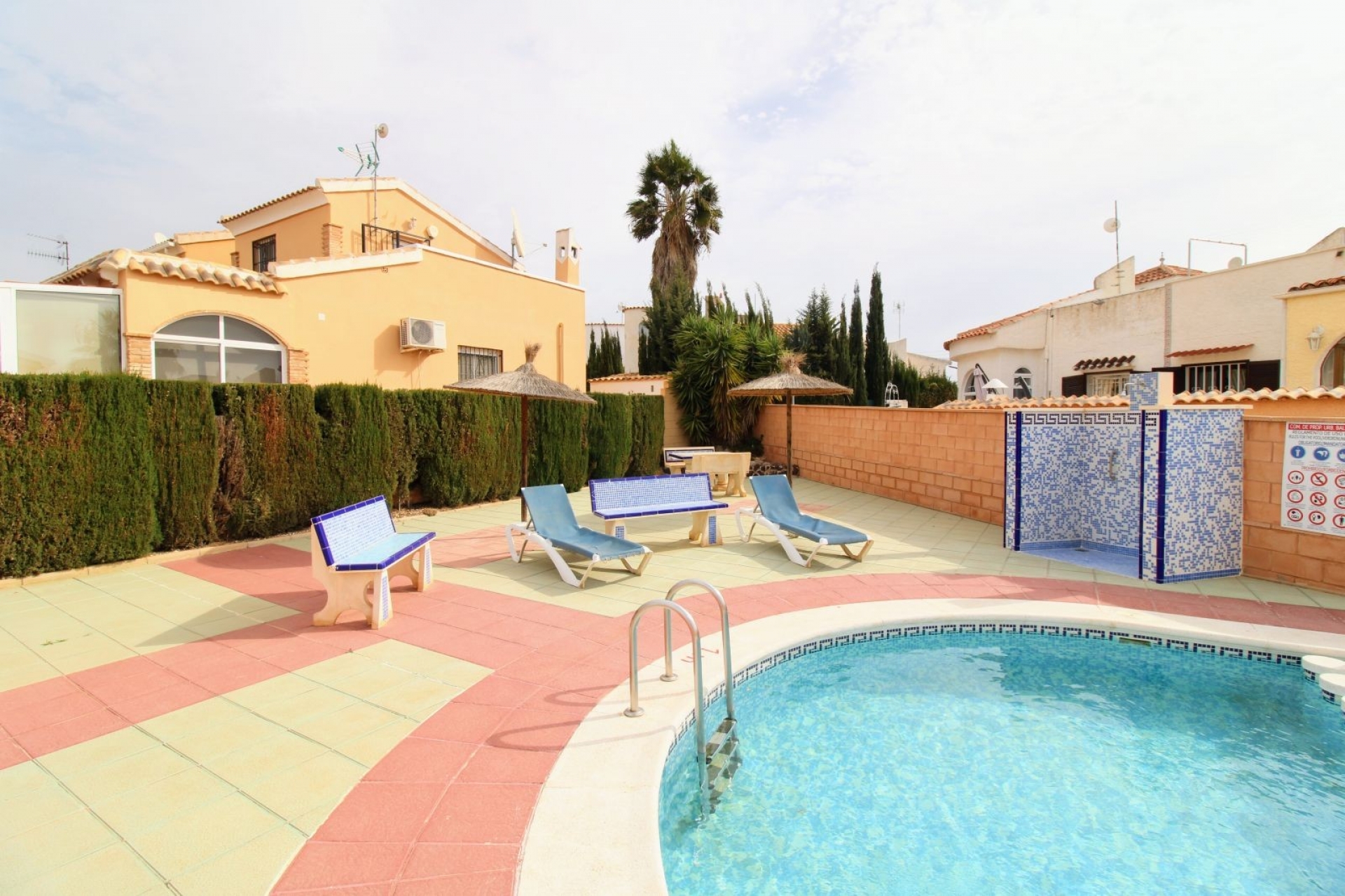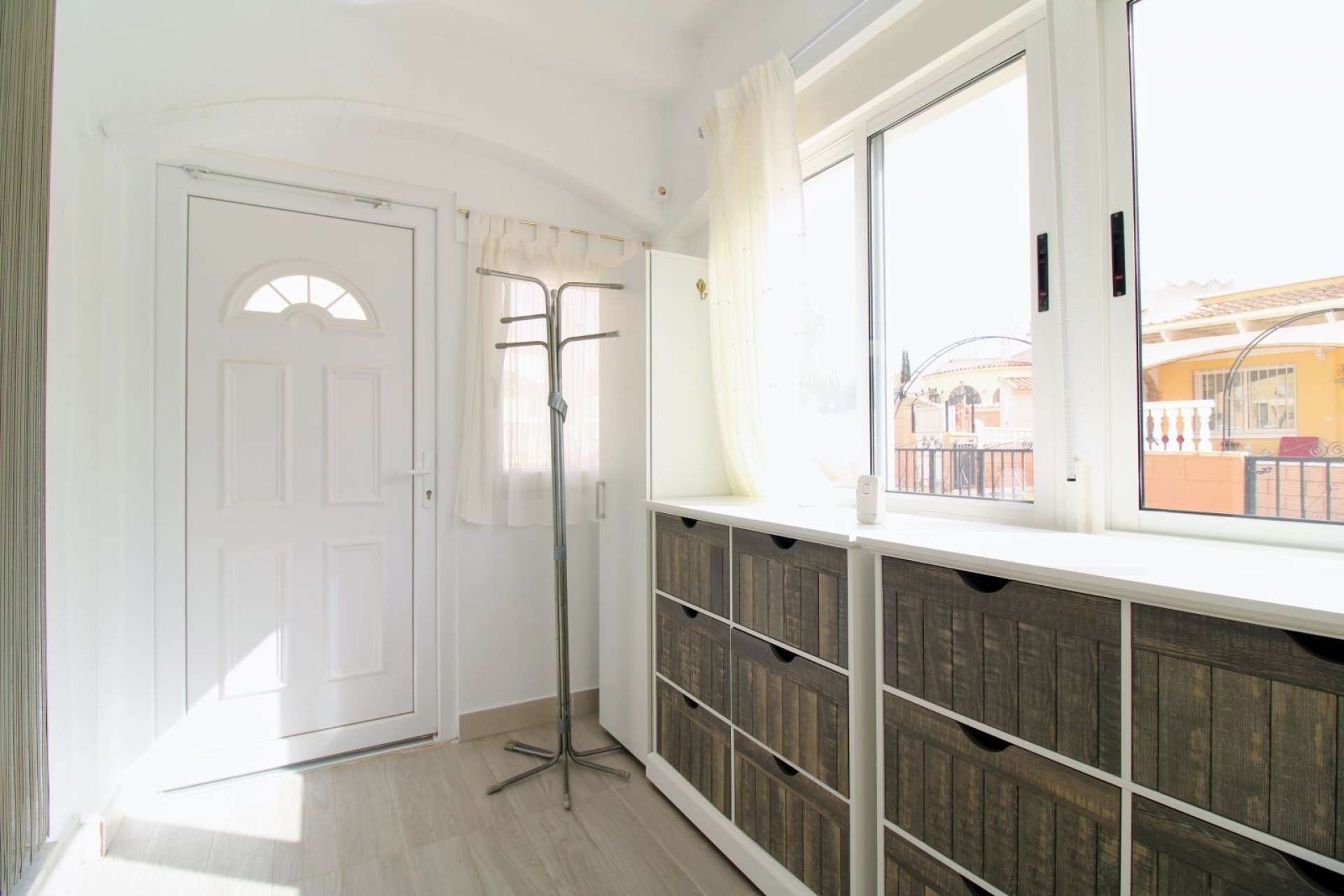 Nice detached house in a quiet area in Las Mimosas, Orihuela Costa. The house has a spacious front yard with space for parking a car, a dining set, summer kitchen and barbecue.