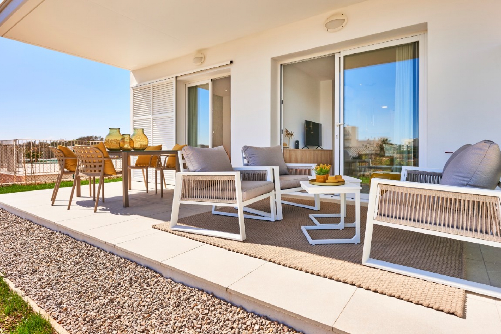 New apartments for sale in Cala d’OR, Majorca Compass is a development of 2-bedroom apartments, with Mediterranean style architecture and where the predominant colour is white. The development is surrounded by spacious gardens with native flora and 2 communal pools where you can make the most of the pleasant climate that the island enjoys. For sale direct from developer. Taylor Wimpey Spain is developing Compass in Cala d’Or with apartments of different orientations to meet all requirements. Compass, Cala d’Or has 2-bedroom apartments with 2 bathrooms (1 en-suite) and good sized terraces so that you can enjoy the unbeatable Mediterranean climate. The ground floor apartments have large terraces with a private porch and a garden for private use, all others will enjoy ample terraces and nice views over the countryside, landscaped communal gardens, pools and some with views to the harbour. These contemporary apartments are equipped to a high standard and every detail has been taken care of. The apartments are finished to the standard that you would expect from a company that has over 60 years of experience in building quality homes in Spain. Each apartment has an outdoor parking space. For sale direct from Taylor Wimpey España. 65 years building homes in Spain.