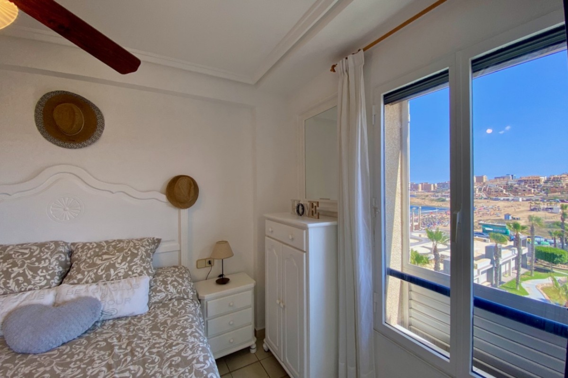 From the living room we access the terrace, which without a doubt, has one of the most impressive views of La Mata beach. The terrace faces south, as do all the rooms in the apartment. Therefore, it is very bright and sunny.