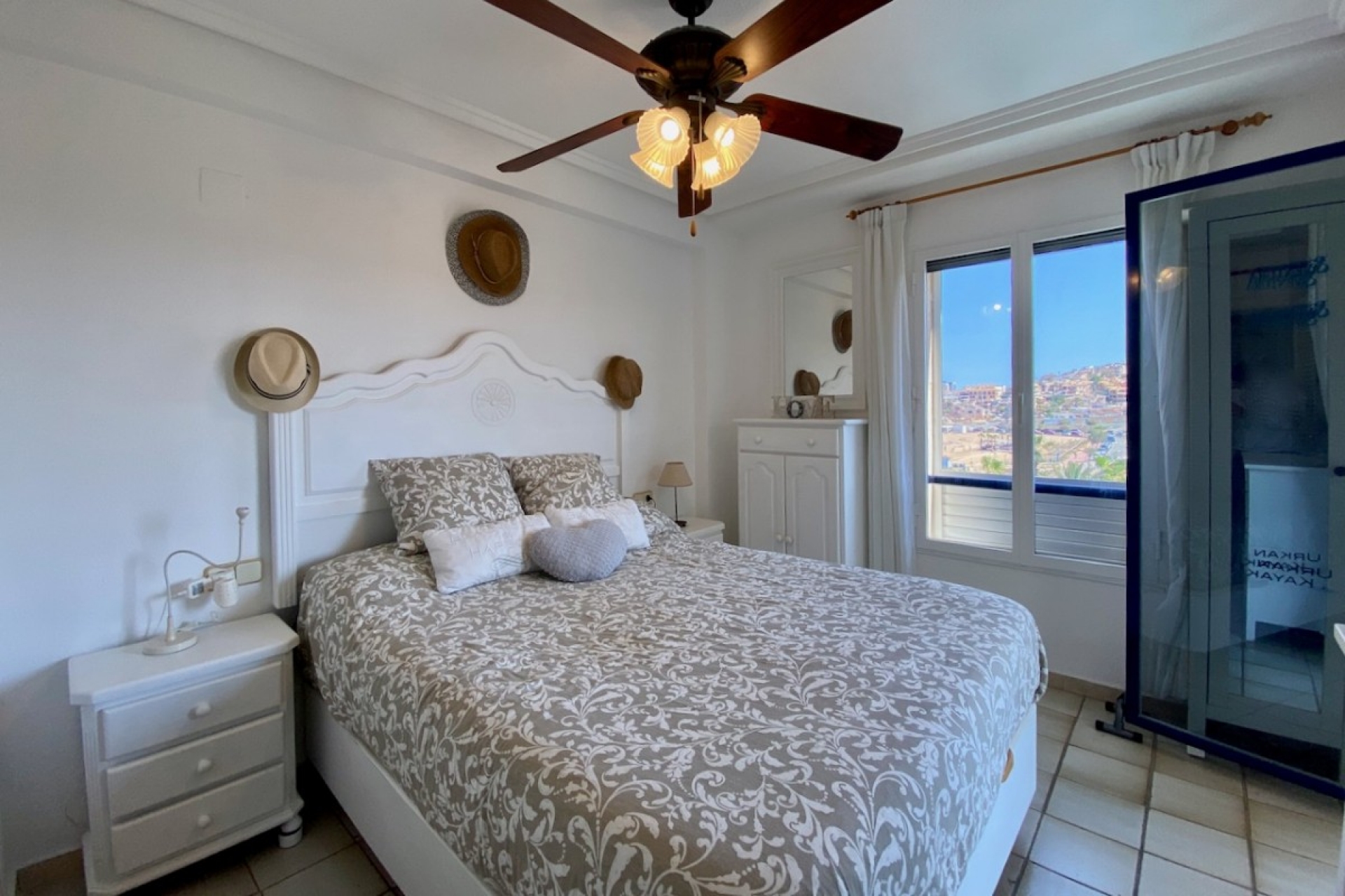 We can also enjoy the large bedroom with direct access to the terrace and impressive views of the community areas and the beach.