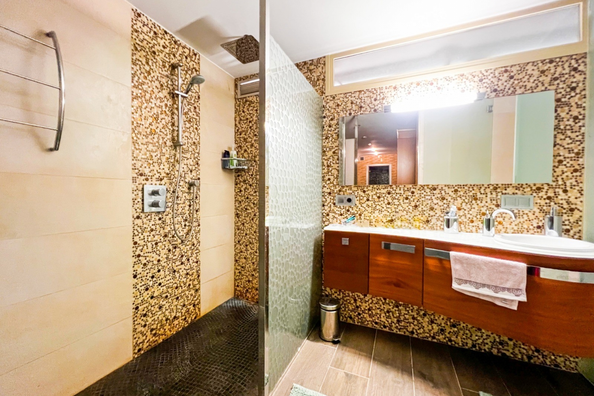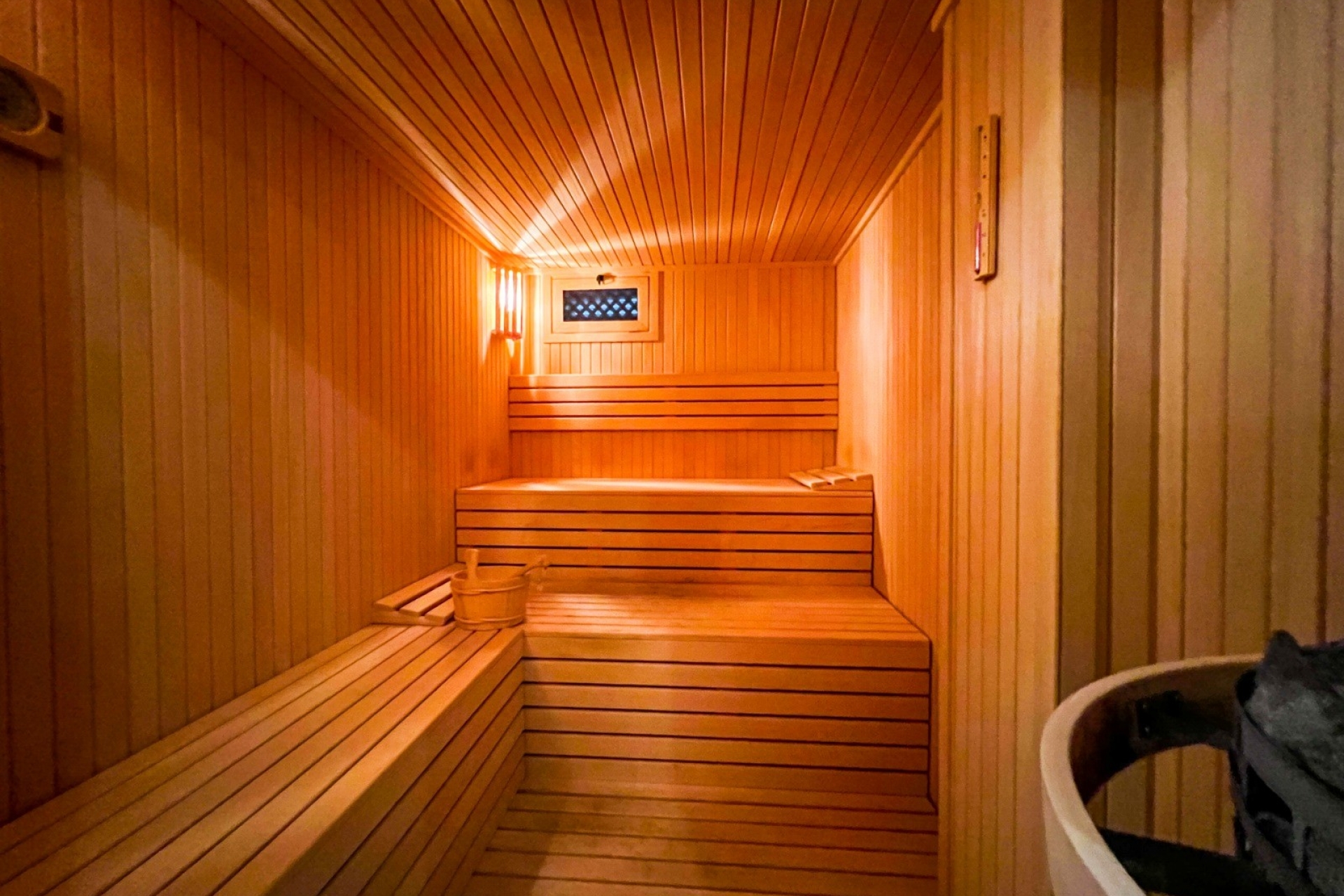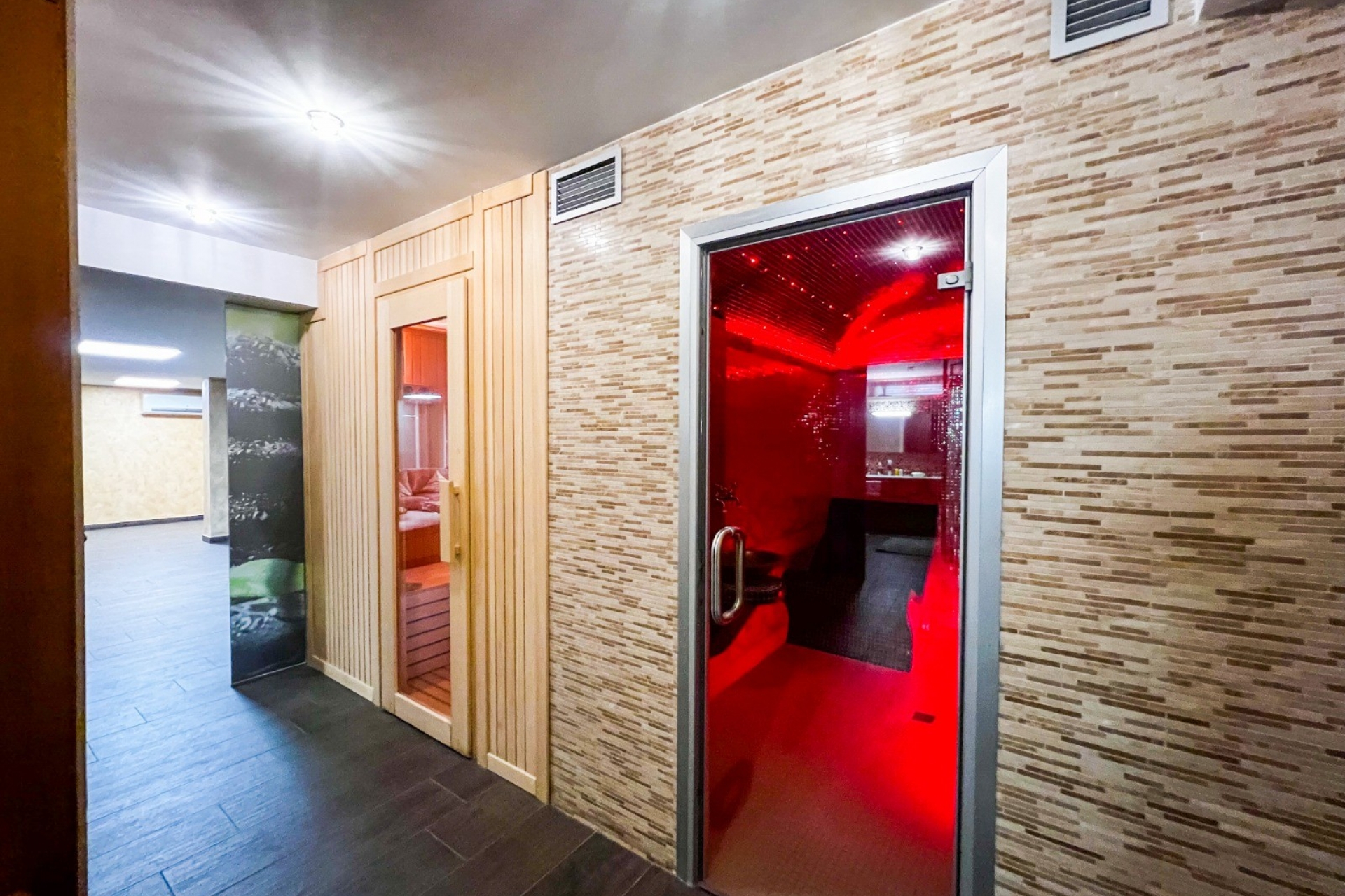 In the basement there is underfloor heating and both saunas can be switched on by a timer. It is also very important to note that on both levels where the bedrooms are located there is independent climate control.