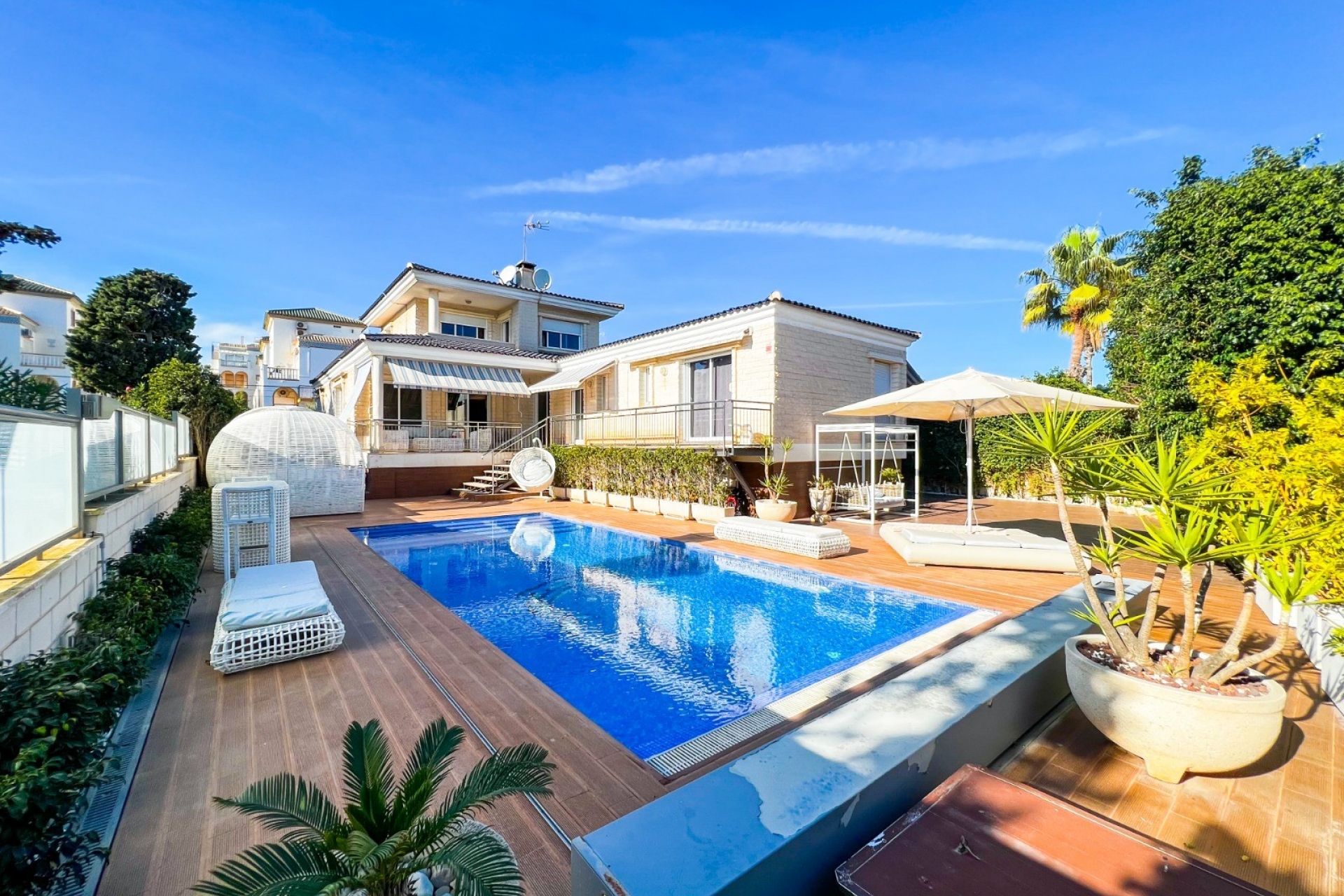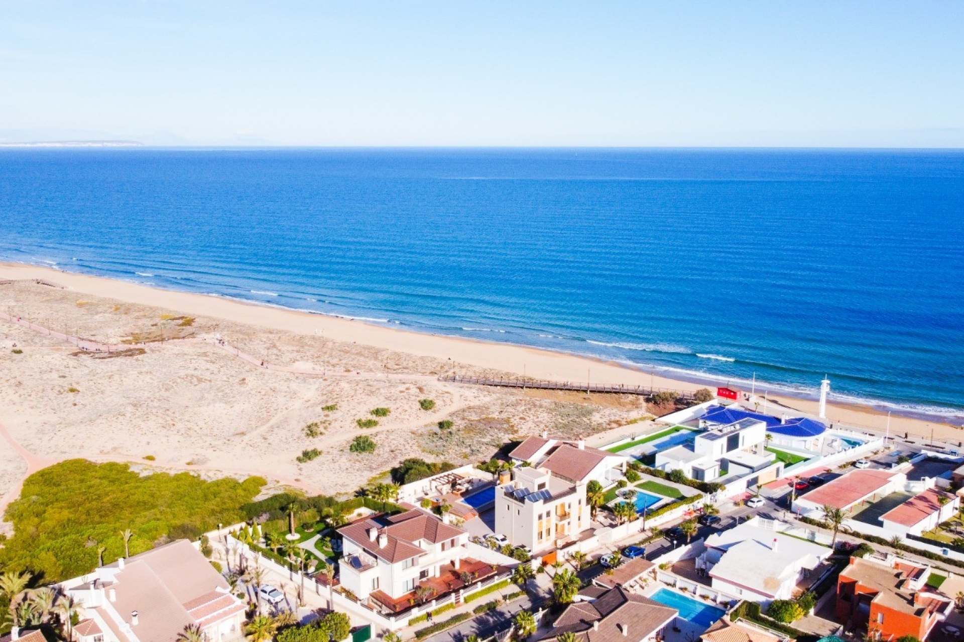 In the immediate vicinity of the villa you will find magnificent sandy beaches, restaurants and bars, as well as absolutely everything you need to enjoy the highest standard of living and a great holiday. The nearest international airport is Alicante airport, a 30 minute drive away.
