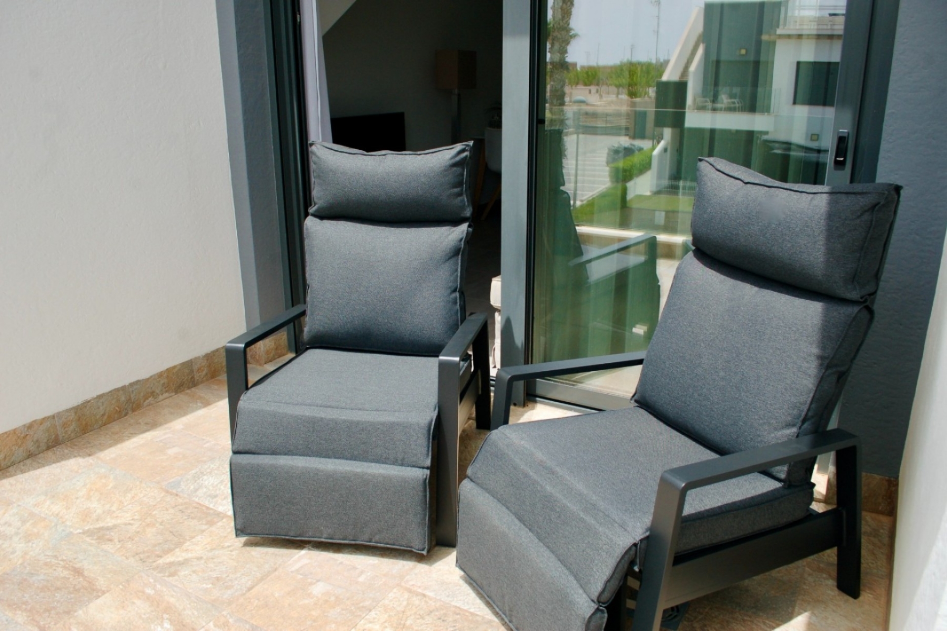 Pilar de la Horadada is a typical Spanish village in the southernmost part of the Costa Blanca. There are supermarkets, numerous shops, restaurants and bars and several beautiful squares along the large main street. The beautiful beaches of Torre de la Horadada and Mil Palmeras with its sandy promenade are just 5 minutes . Pilar de la Horadada also has a well-developed network of cycling and walking paths, as well as a wide range of different sporting activities. The 18-hole Lo Romero golf course is a short drive from the town. There is a seamless connection to the N332 and AP7. Corvera (Murcia) and Alicante airports are 40 and 55 minutes' drive away respectively.