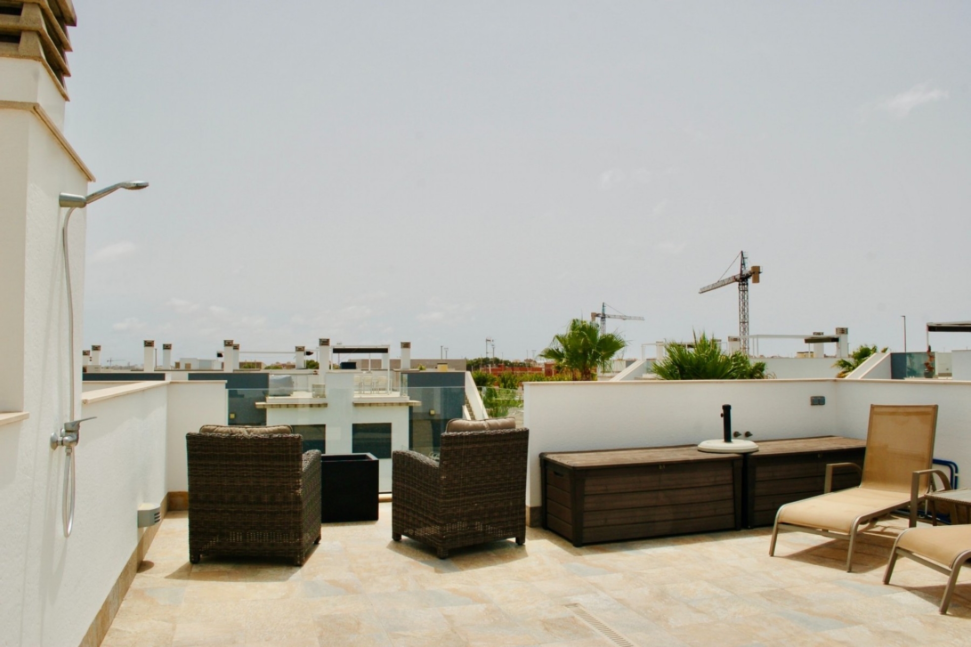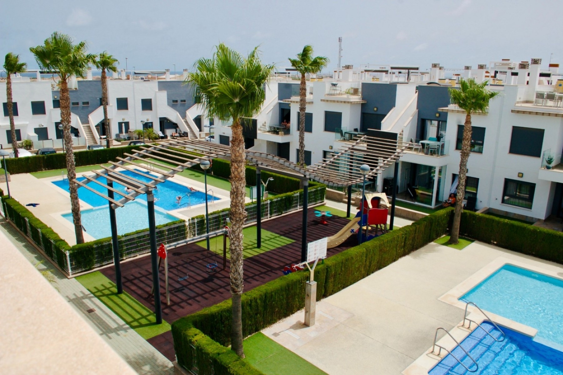 This top floor bungalow is located on a luxury gated estate in Pilar de La Horadada.