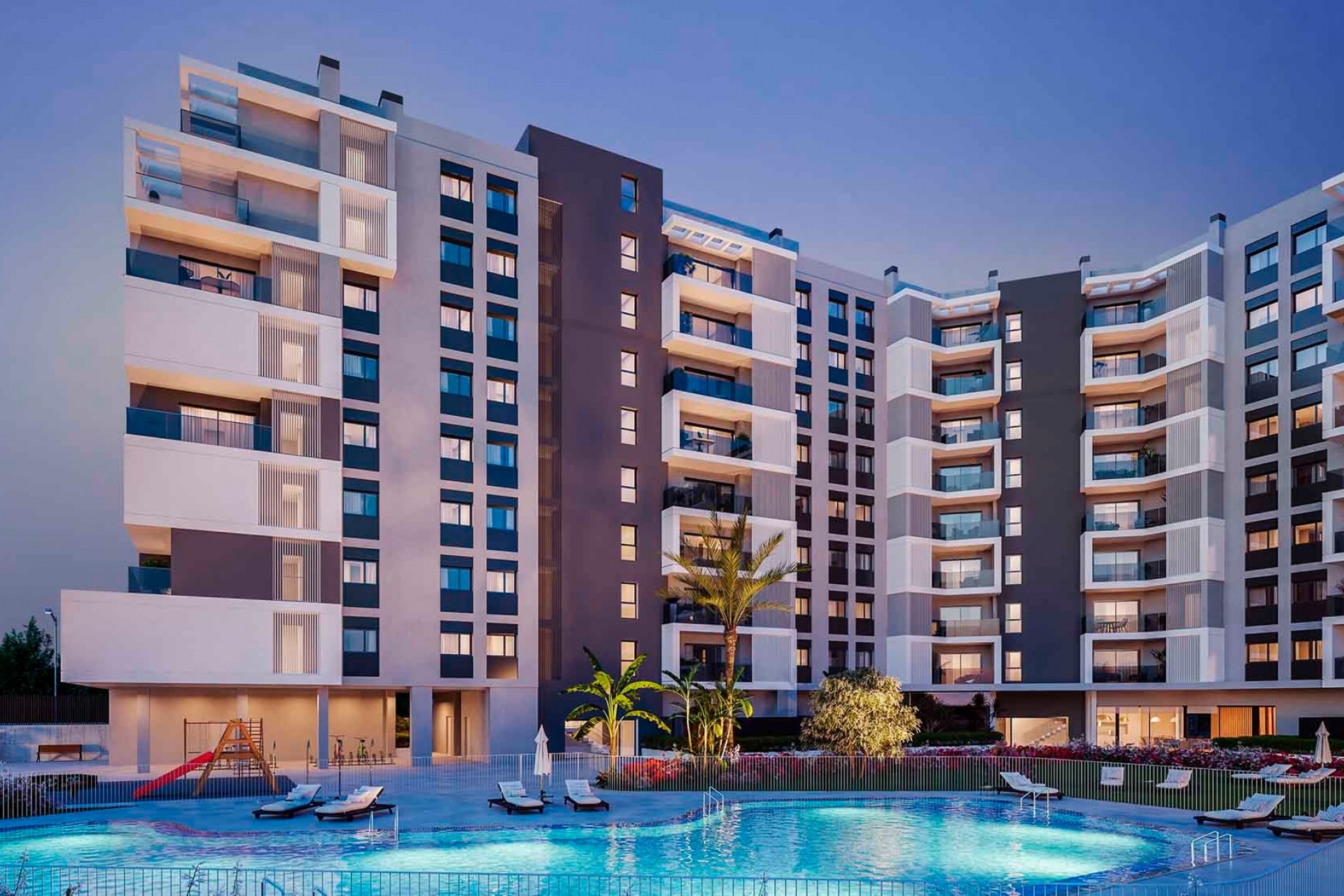 It is a residential complex with 138 flats with 1, 2 and 3 bedrooms. All the flats have large terraces.