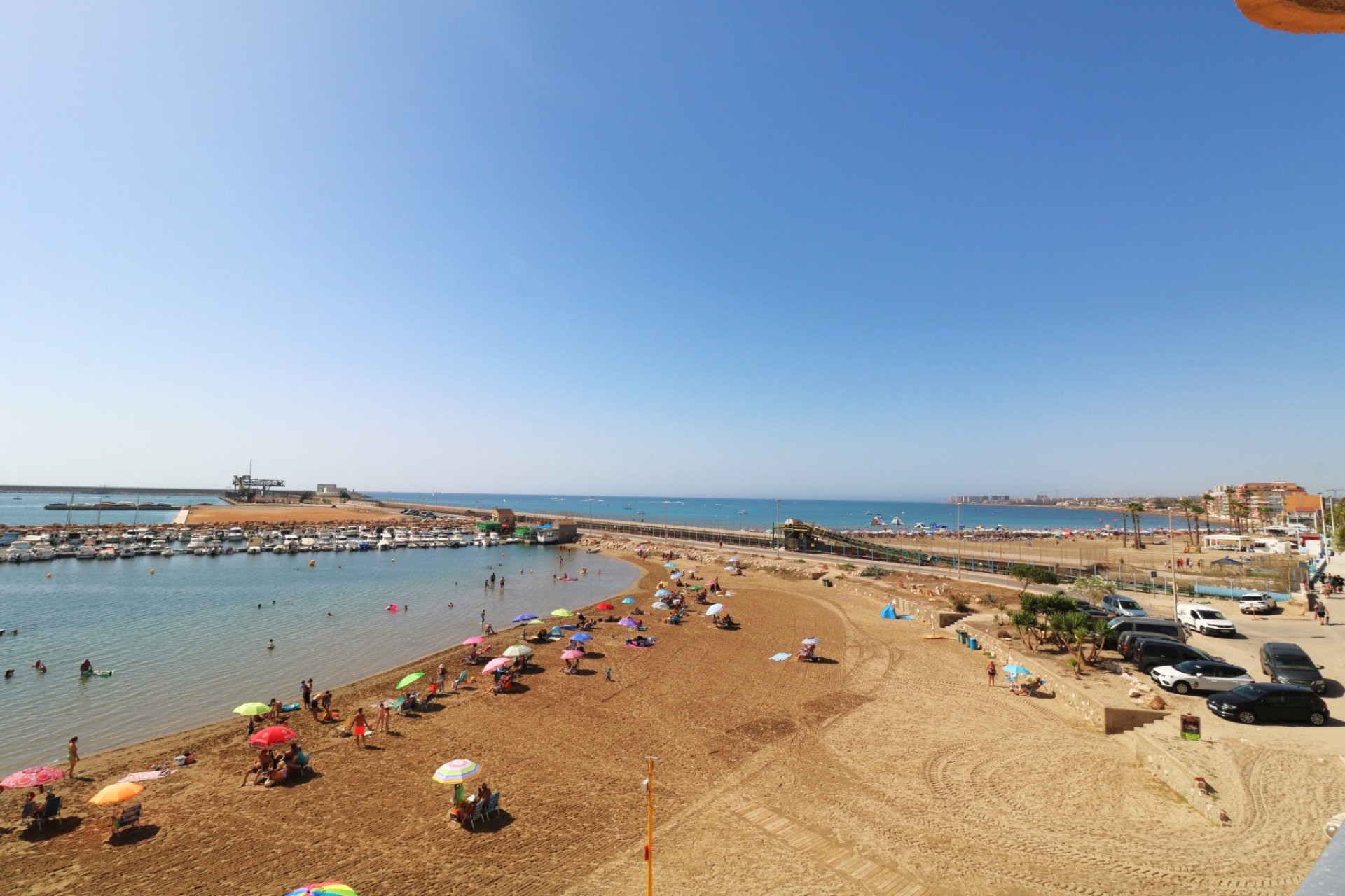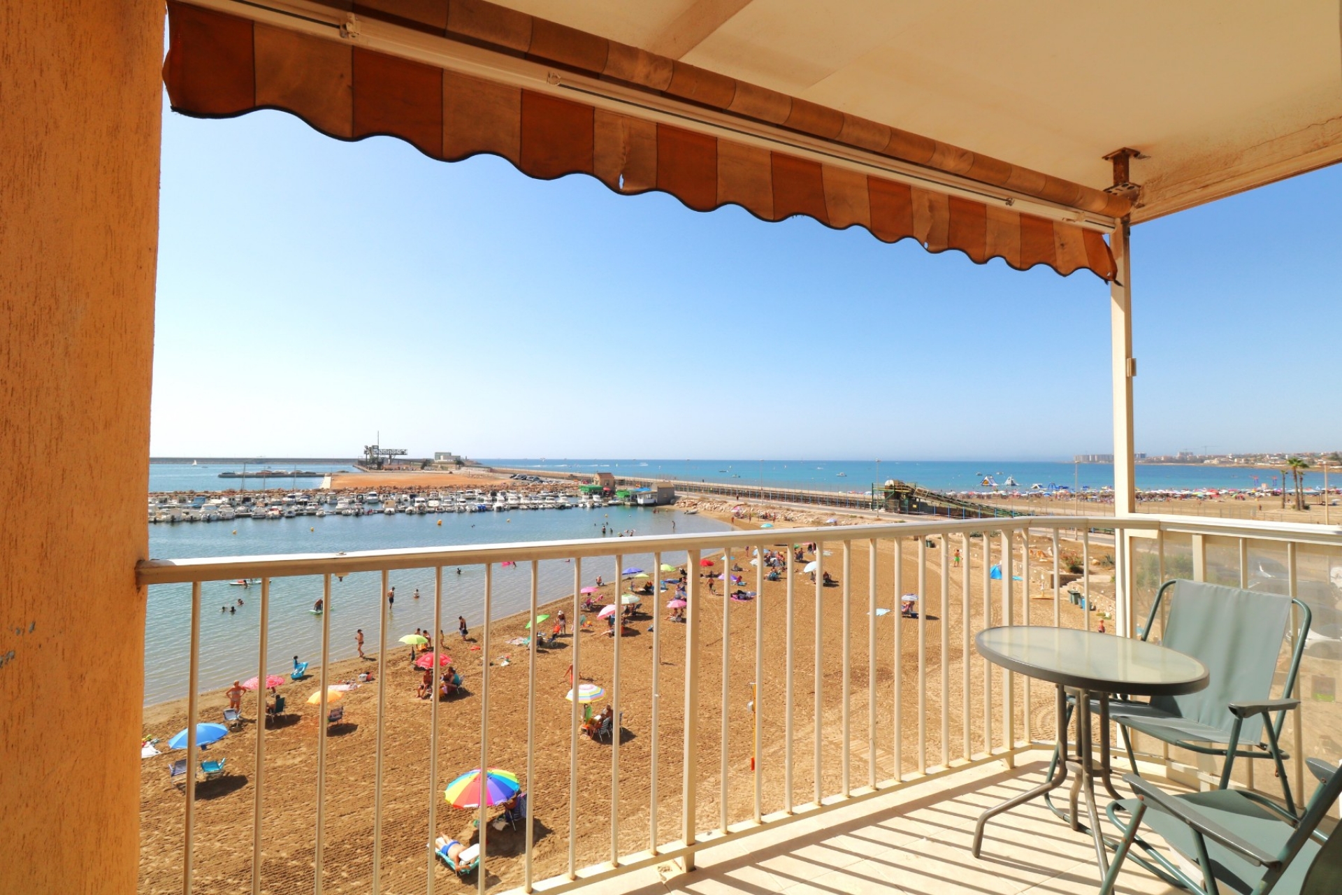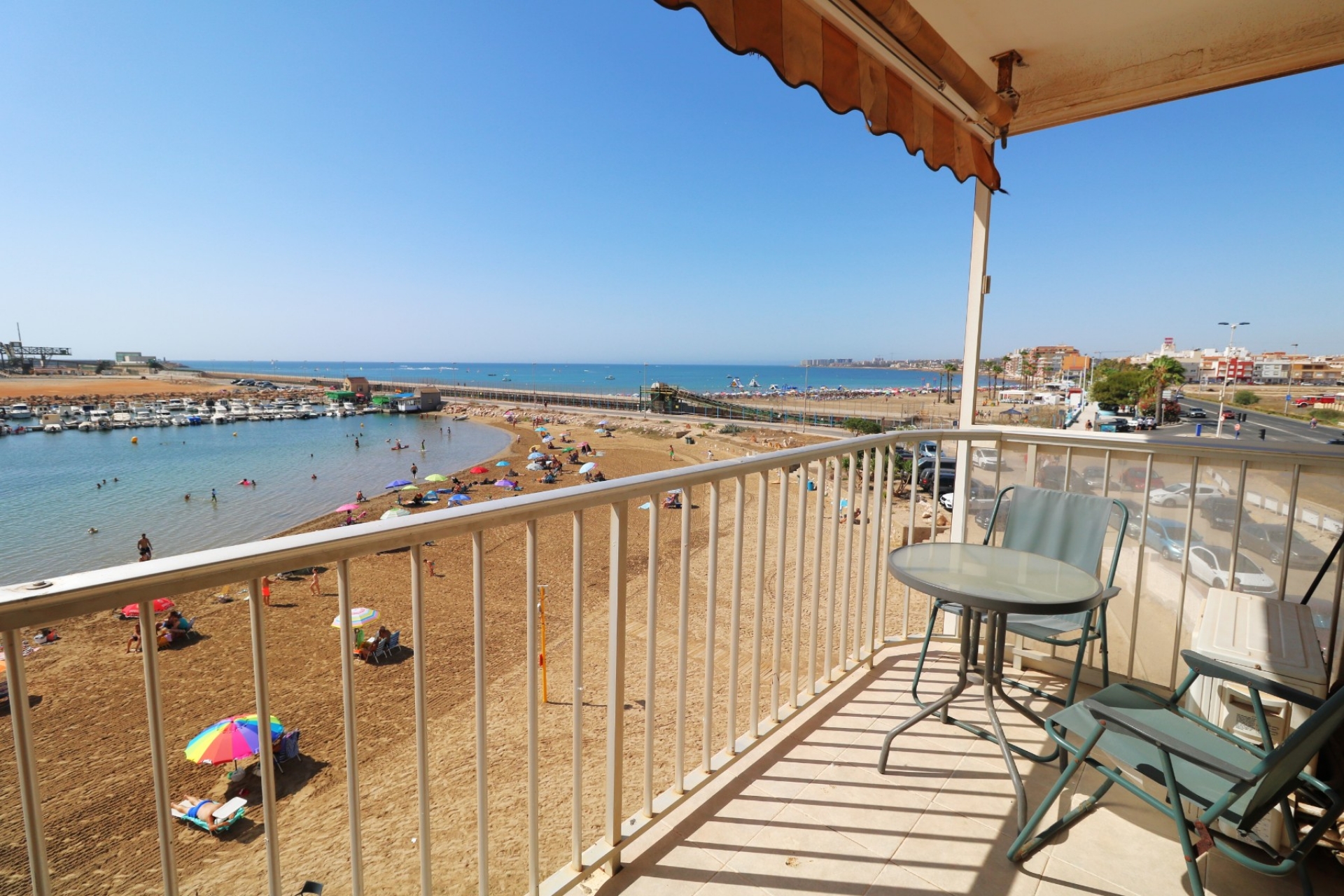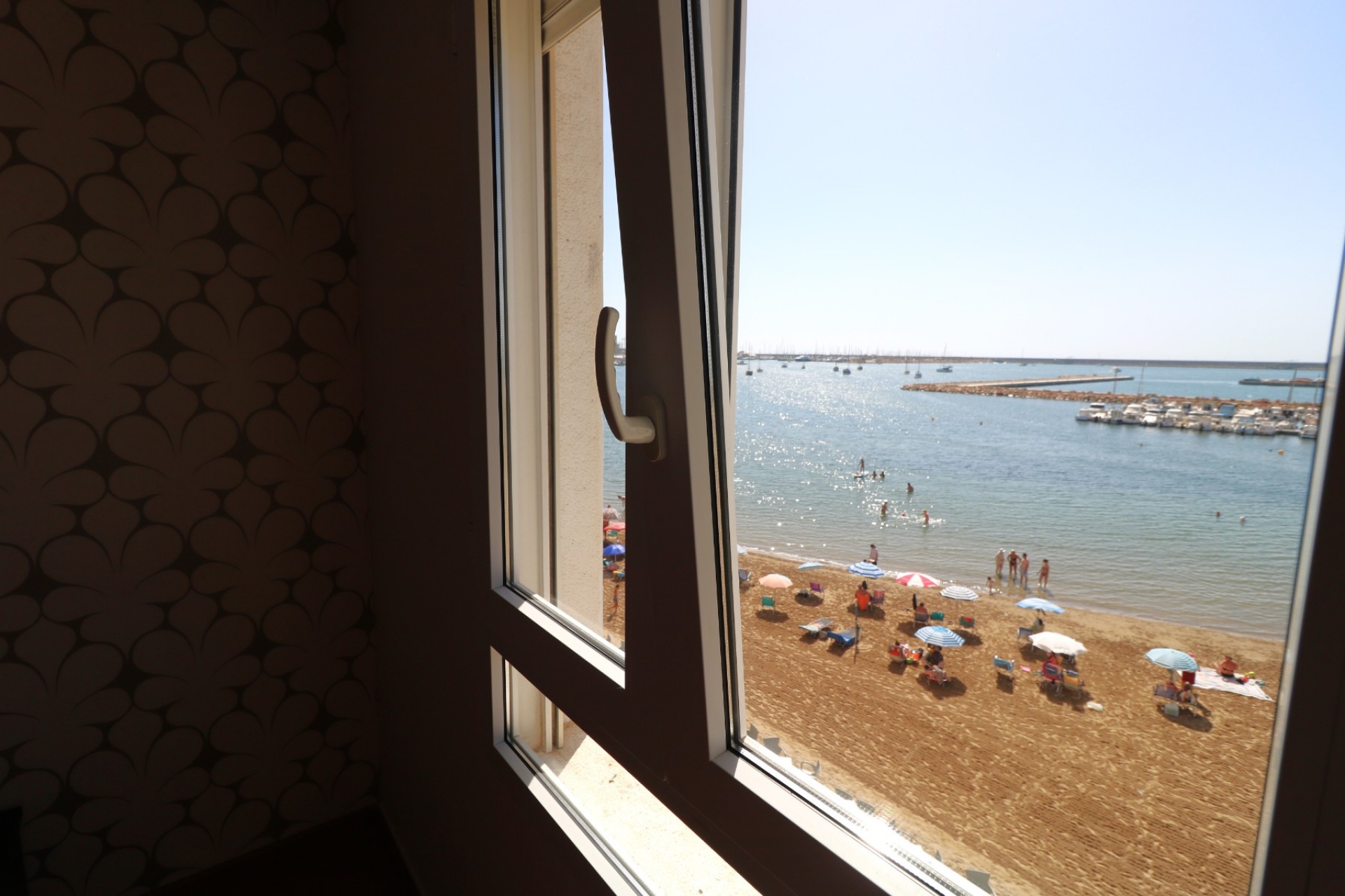 Apartment with frontal sea views in Torrevieja Acequion area. It has 106m2 built, 3 double bedrooms, one bathroom, renovated property, equipped kitchen, south facing, exterior carpentry pvc / double glazing. Includes storage room.